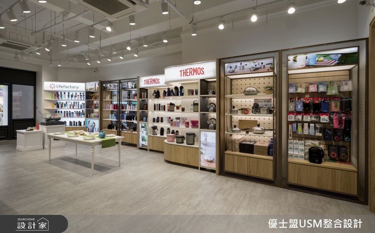 中古屋改建而成的商業空間,透過北歐風的輕盈表現,如實呈現品牌精神,透過白色牆面展現空間張力,並以大面積落地玻璃窗串聯與消費者的親切距離,搭配著流暢的引導動線,提供消費者們最舒適的購物情境,快跟著小編一起來看看吧! 空間整體採用金屬、木質打造陳列壁櫃,呈現剛中帶柔的視覺效果,且加入明亮的投射光源,烘托檯面上的商品,讓每一項商品均能清晰展現在顧客面前;天花板更做出特殊造型,由店內中間兩側橫樑所交織出的屋頂造型為分界,將場域分界出「商品體驗」、「示範實演」兩種形象表情,而隨著動線往內,地坪紋理也做出木紋變化,給予消費者如同居家般的舒適氛圍! 小編的最愛 空間內安排大器的中島實演台、居家合宜的體驗桌,以及白磚紋理的抽風機,共同交織出兼具商品陳列、示範體驗的嶄新消費型態,並額外規劃櫃台旁的洽談桌,提供一處顧客與服務人員的交流中心,將生活感表達得淋漓盡致!