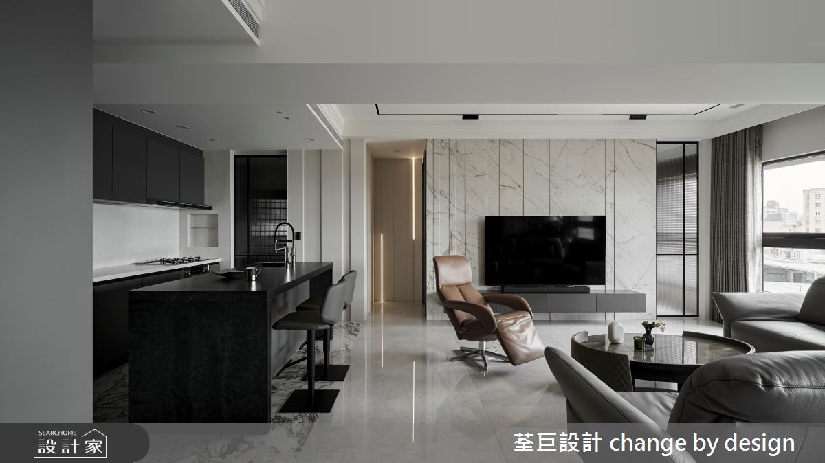 由荃巨設計change by design精心規劃的100坪四房住宅空間,家庭成員一共有3位大人。因應屋主需求,設計師運用現代簡約風作為主軸,搭配石材、薄磚、鍍鈦鐵件,打造全家人的夢想家居。