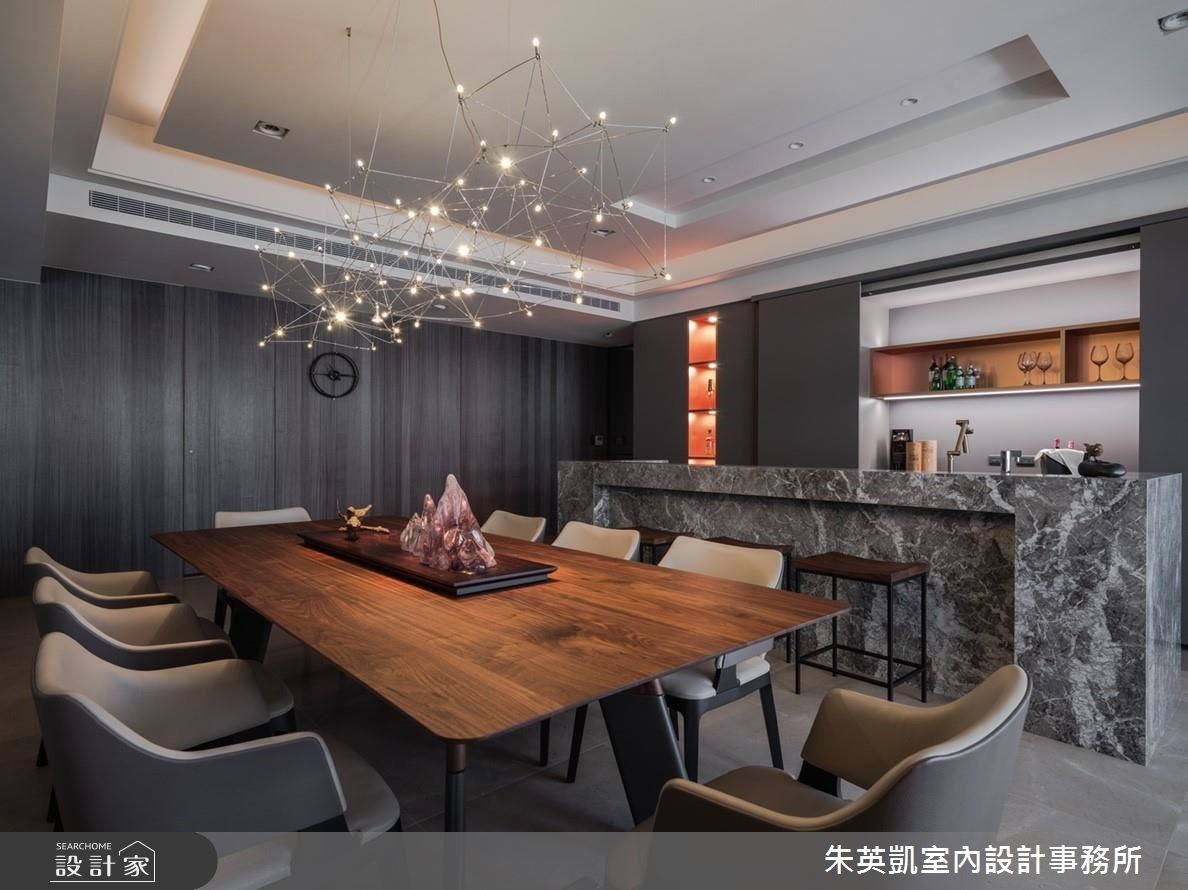100 坪大宅,作為屋主長年旅居海外後的在台退休居所,除了期望空間可與家人共享之外,更能成為親友們的招待場域,於是設計師開拓 5 房 2 廳 4 衛的開闊格局;並運用大理石、石材、磁磚、木皮、鐵件、鍍鈦、鋼板、壁紙、線板等異材搭接,演繹豪邁的現代風格,打造屋主的後半人生新境界,快跟著小編一起來看看吧! 空間以開放式格局串連客餐廳與中島吧檯,打造寬敞舒適的聚會場域,促成美好的交流互動,而為了展現磅礡氣勢,於客廳電視牆選用粗獷的觀音山石石皮做鋪陳,成就大器雋永的主牆景致;與主牆相對的,則是中島吧檯後方的完整立面,巧妙利用活動滑門隱藏工作檯面,呈現乾淨俐落的牆面尺度,並在天花板加入璀璨的造型燈光,在沉穩底蘊中添注一絲浪漫奢華,並在居家各角落擺放屋主收藏的家飾與軟件,促成一幅又一幅的端景畫面,激盪出精彩的品味格調! 小編的最愛 設計師綜觀全局,以專業設計勾勒氣派視野,並兼顧起居領域的溫馨感受,讓偌大的百坪豪邸演繹兩種生活模式,替屋主退休人生帶來不同凡響的體驗!