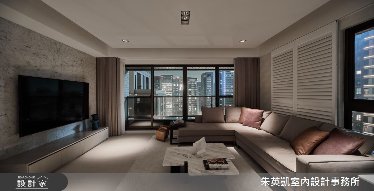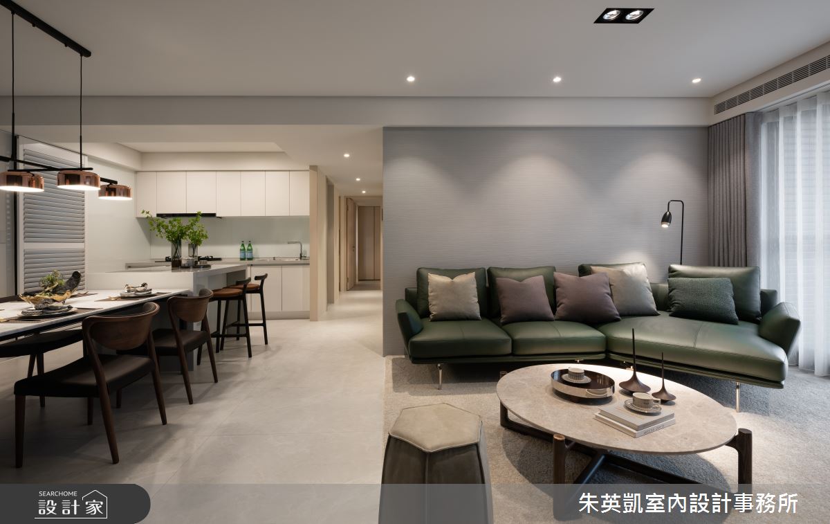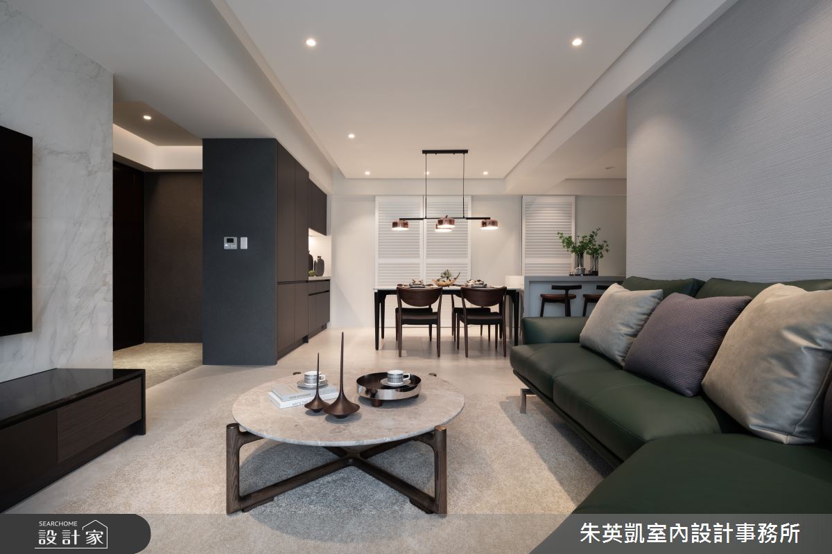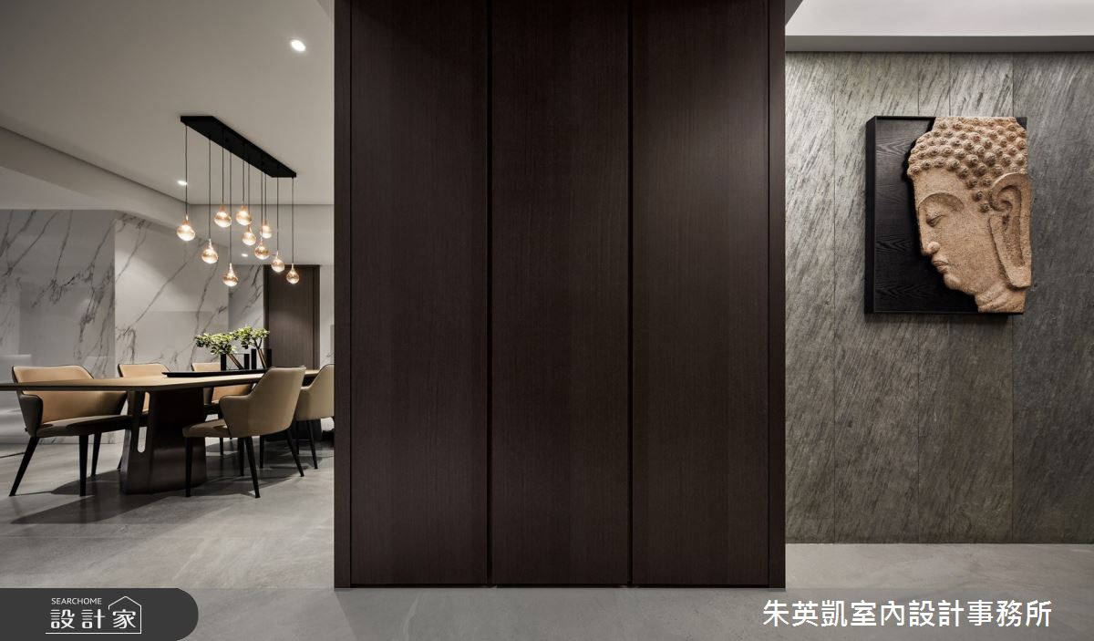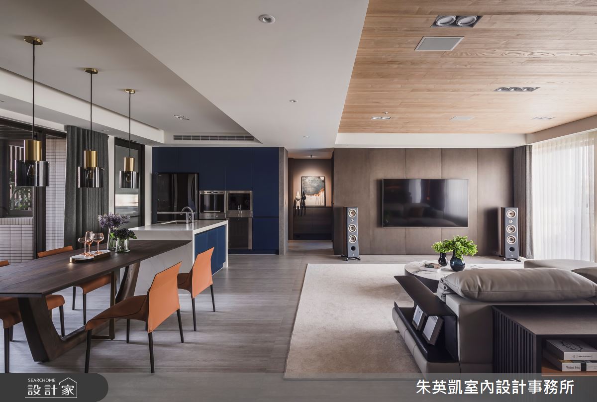 來自朱英凱室內設計事務所的130坪現代風住宅案,屋主一家人共有2位大人、2位長輩,是一間單層新成屋(5年以下)的三房格局,設計師藉由建材以壁紙、水泥漆、超耐磨木地板、石英磚/拋光石英磚、鐵件、大理石、木百葉、人造石、日本陶藥漆(特殊漆)的搭配應用,實現一家人的理想生活。