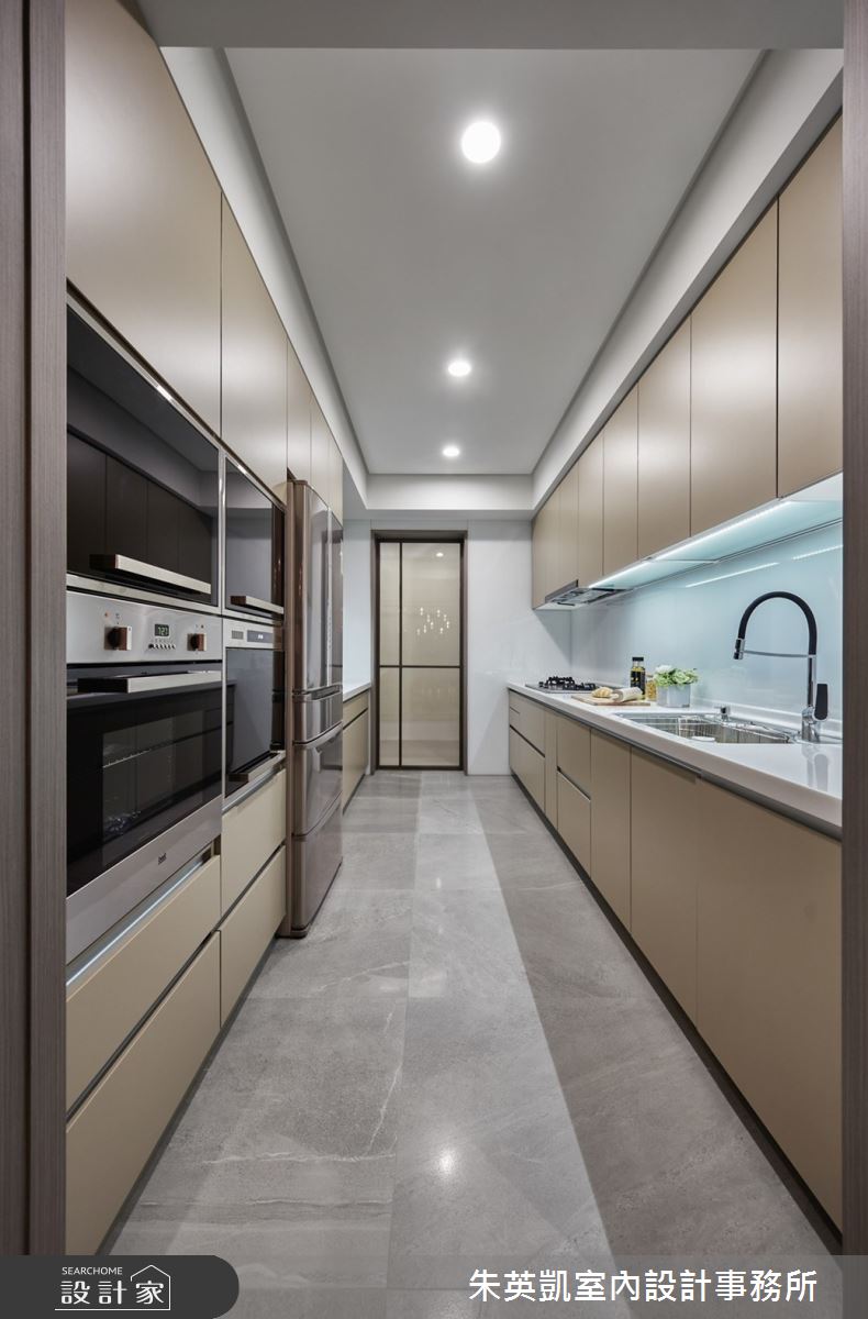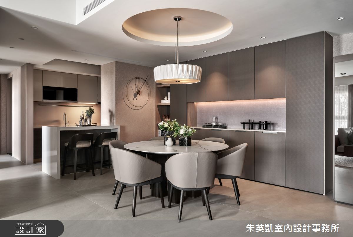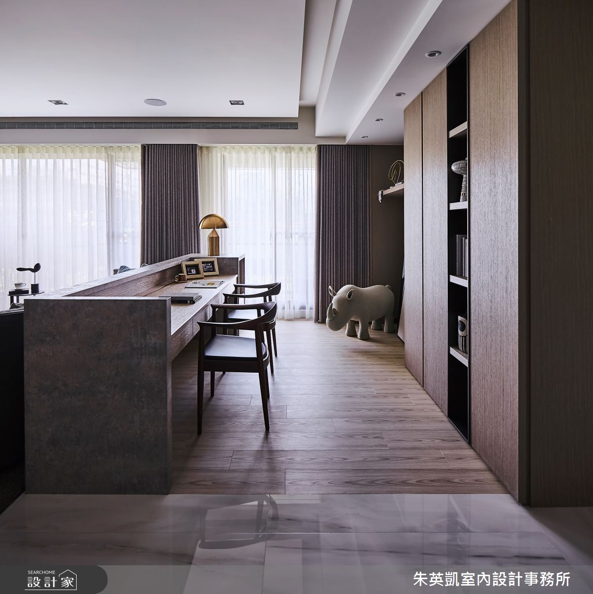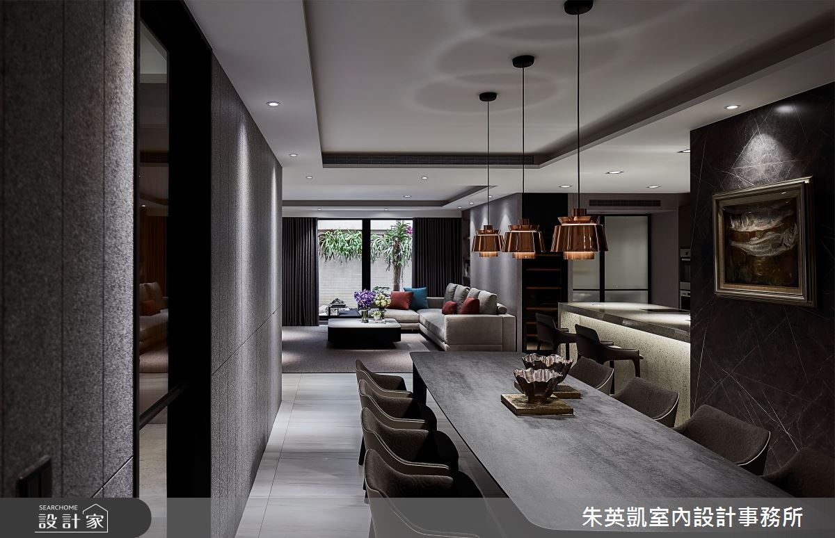 來自朱英凱室內設計事務所的130坪現代風住宅案,屋主一家人共有2位大人、2位長輩,是一間單層新成屋(5年以下)的三房格局,設計師藉由建材以壁紙、水泥漆、超耐磨木地板、石英磚/拋光石英磚、鐵件、大理石、木百葉、人造石、日本陶藥漆(特殊漆)的搭配應用,實現一家人的理想生活。