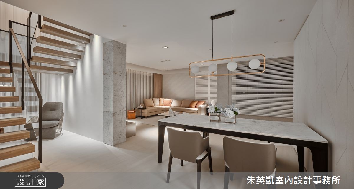 來自朱英凱室內設計事務所的70坪現代風住宅案,屋主一家人共有2位大人、1位長輩,是一間複層新成屋(5年以下)的四房格局,設計師藉由建材以壁紙、水泥漆、海島型木地板、石英磚、鐵件、鋼刷木皮、大理石、石材、噴漆、日本特殊漆的搭配應用,實現一家人的理想生活。