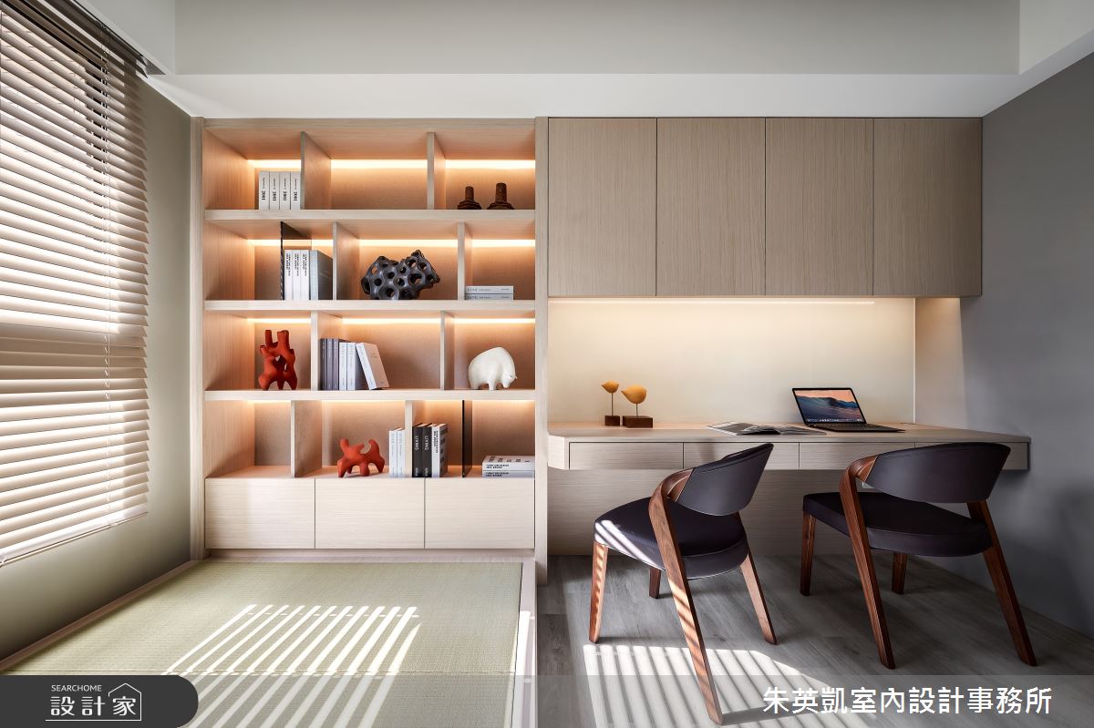 來自朱英凱室內設計事務所的35坪現代風住宅案,屋主一家人共有2位大人、1位長輩,是一間單層中古屋(5~15年)的三房格局,設計師藉由建材以油漆、壁紙、水泥漆、超耐磨木地板、榻榻米、鐵件、烤玻、木作貼皮、烤漆、木百葉、石材、石塑地板、日本特殊漆的搭配應用,實現一家人的理想生活。