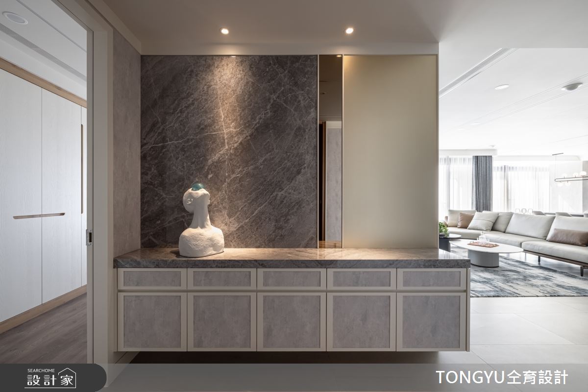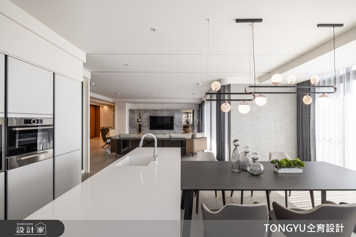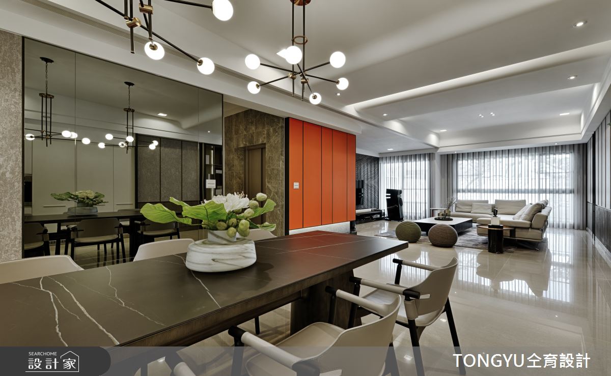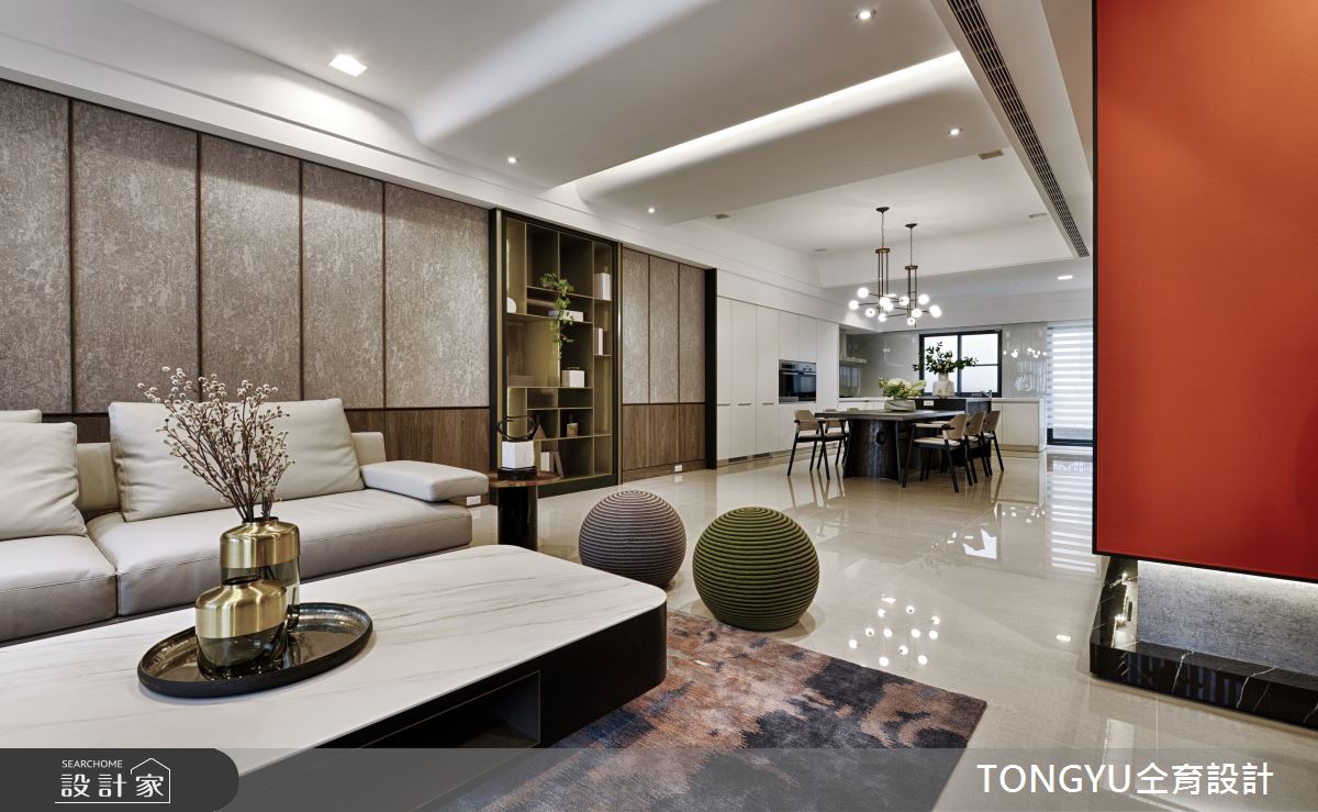 來自仝育室內裝修設計的113.8坪現代風住宅案,屋主一家人共有2位大人、3位小孩,是一間單層新成屋(5年以下)的三房格局,設計師藉由建材以鐵件、茶玻、烤漆、大理石、皮革、茶鏡、金屬美耐板、玻璃磚、酸蝕鏡、進口壁紙、鍍鈦、薄板的搭配應用,實現一家人的理想生活。