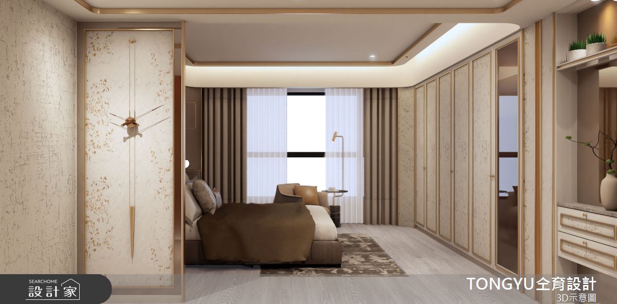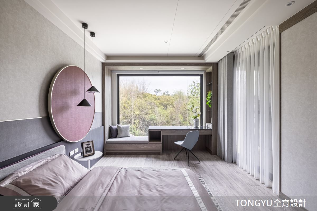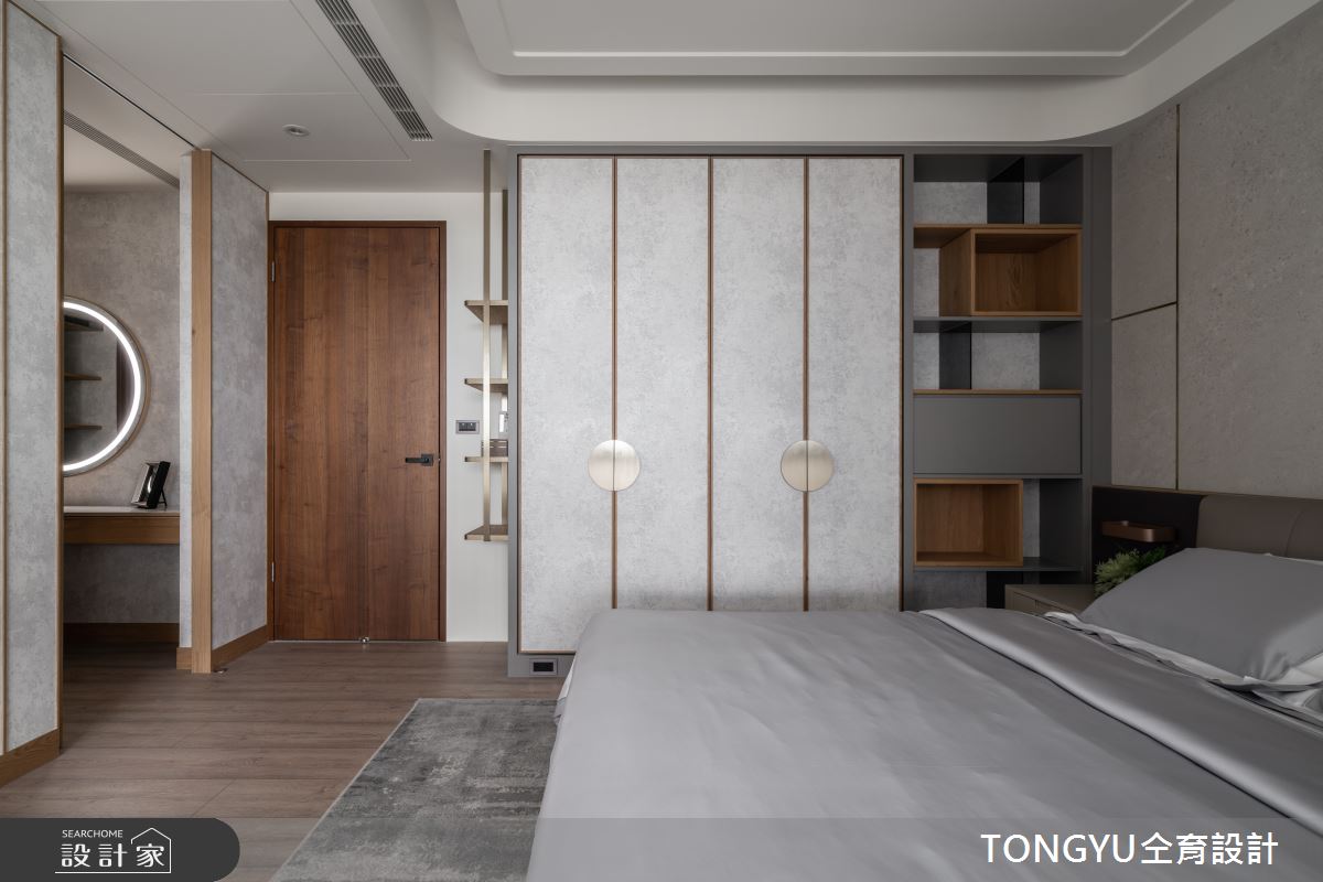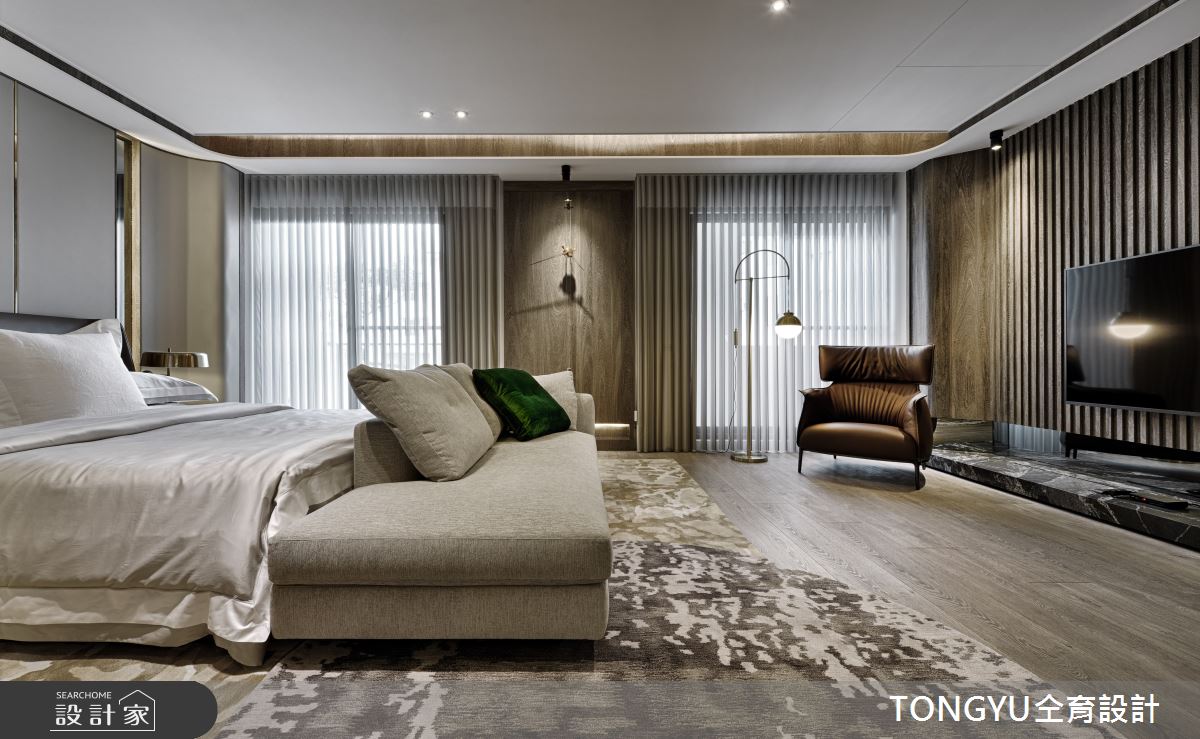 仝育設計以油漆、壁紙、木地板、木紋磚、石英磚/拋光石英磚、鐵件、灰鏡、茶玻、鍍鈦金屬、木作貼皮、烤漆、鋼刷木皮、大理石、磁磚、賽麗石、皮革、石材、繃布、噴漆、噴砂玻璃的搭配應用,呈現現代風居家氛圍,將此間157坪、四房、單層、毛胚屋打造成舒適愜意的家庭空間,完成全家人的夢想之居。