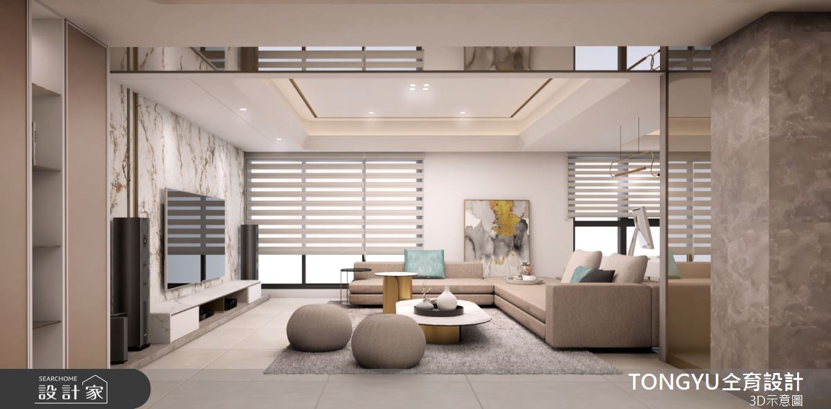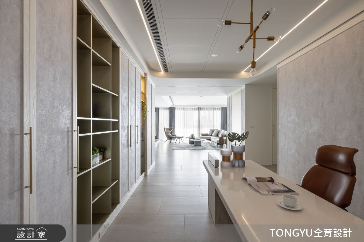 來自仝育室內裝修設計的180坪現代風住宅案,屋主一家人共有2位大人,是一間複層新成屋(5年以下)的五房格局,設計師藉由建材以六角磚/蜂巢磚、壁紙、水泥漆、超耐磨木地板、木地板、鐵件、灰鏡、鍍鈦金屬、木作貼皮、鋼刷木皮、大理石、磁磚、石材、噴漆的搭配應用,實現一家人的理想生活。