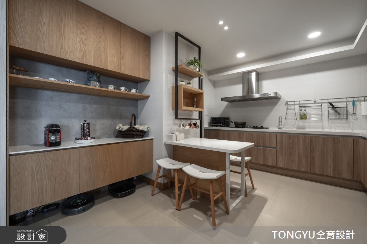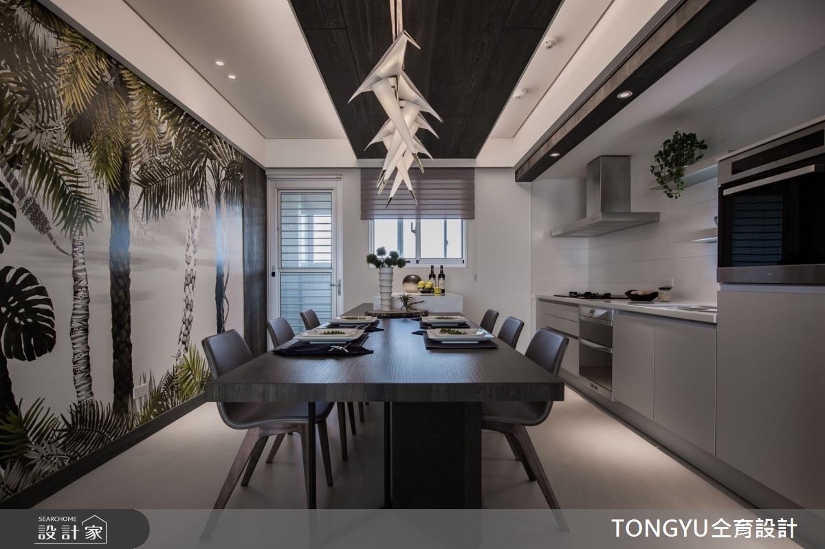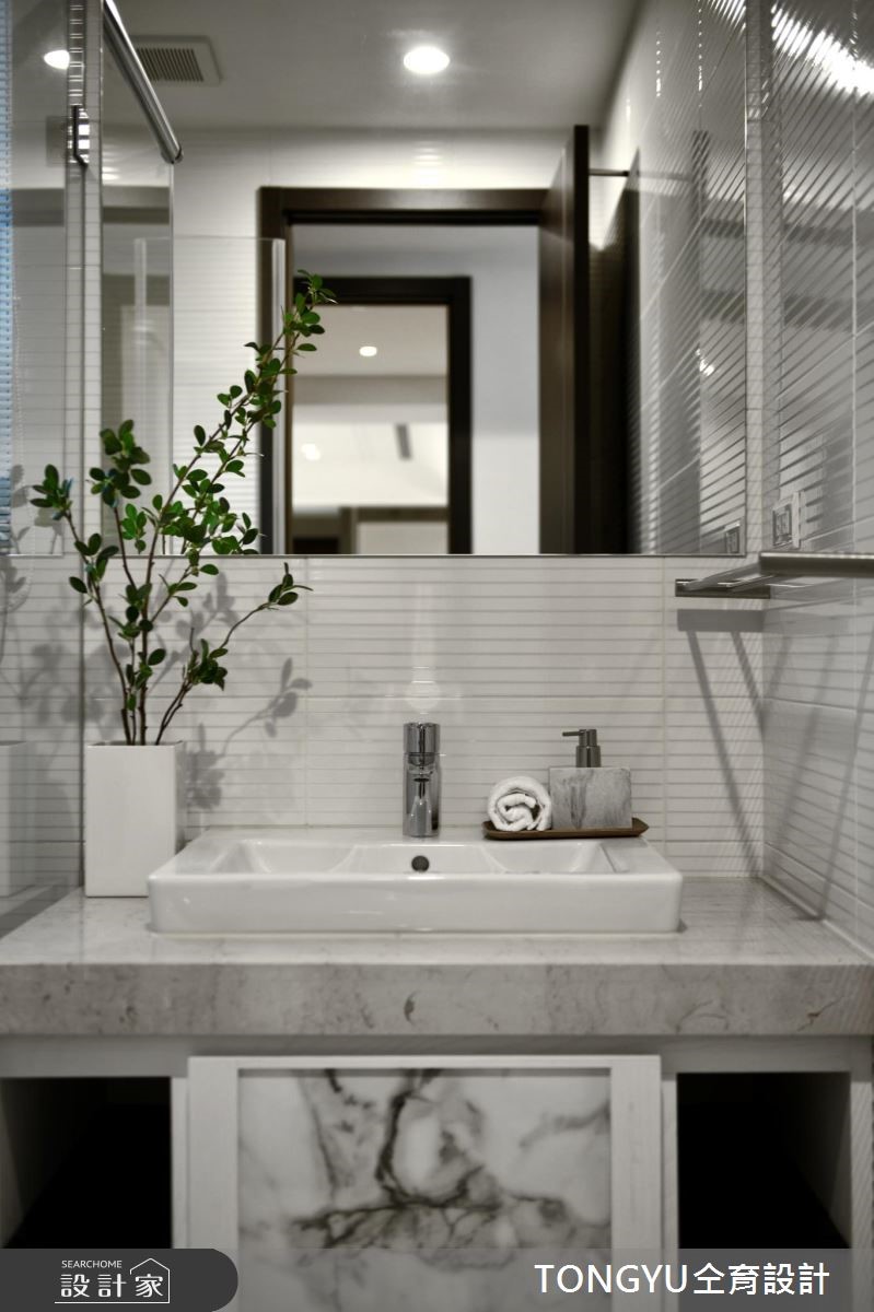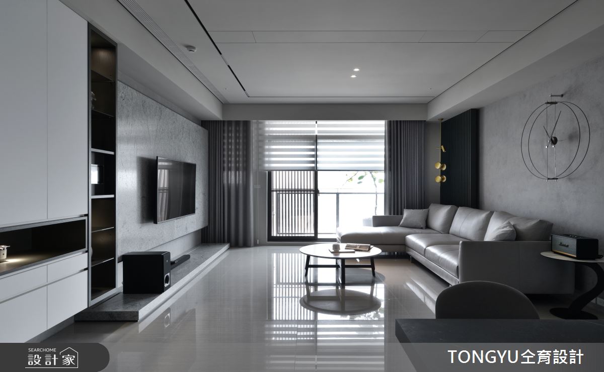來自仝育室內裝修設計的74坪現代風住宅案,屋主一家人共有2位大人,是一間單層預售屋的三房格局,設計師藉由建材以壁紙、超耐磨木地板、木地板、鐵件、灰鏡、大理石、磁磚、石材、玻璃磚的搭配應用,實現一家人的理想生活。