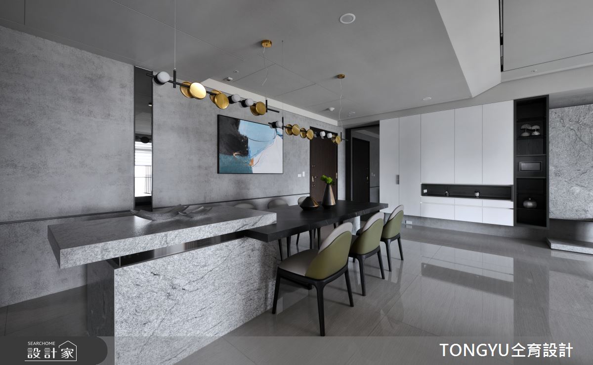 來自仝育室內裝修設計的113.8坪現代風住宅案,屋主一家人共有2位大人、3位小孩,是一間單層新成屋(5年以下)的三房格局,設計師藉由建材以鐵件、茶玻、烤漆、大理石、皮革、茶鏡、金屬美耐板、玻璃磚、酸蝕鏡、進口壁紙、鍍鈦、薄板的搭配應用,實現一家人的理想生活。