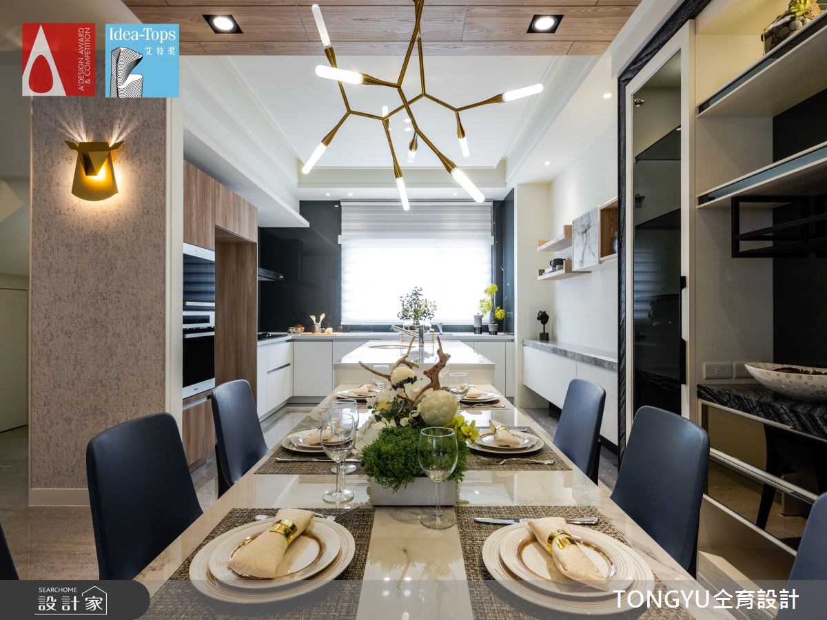 來自仝育室內裝修設計的180坪現代風住宅案,屋主一家人共有2位大人,是一間複層新成屋(5年以下)的五房格局,設計師藉由建材以六角磚/蜂巢磚、壁紙、水泥漆、超耐磨木地板、木地板、鐵件、灰鏡、鍍鈦金屬、木作貼皮、鋼刷木皮、大理石、磁磚、石材、噴漆的搭配應用,實現一家人的理想生活。