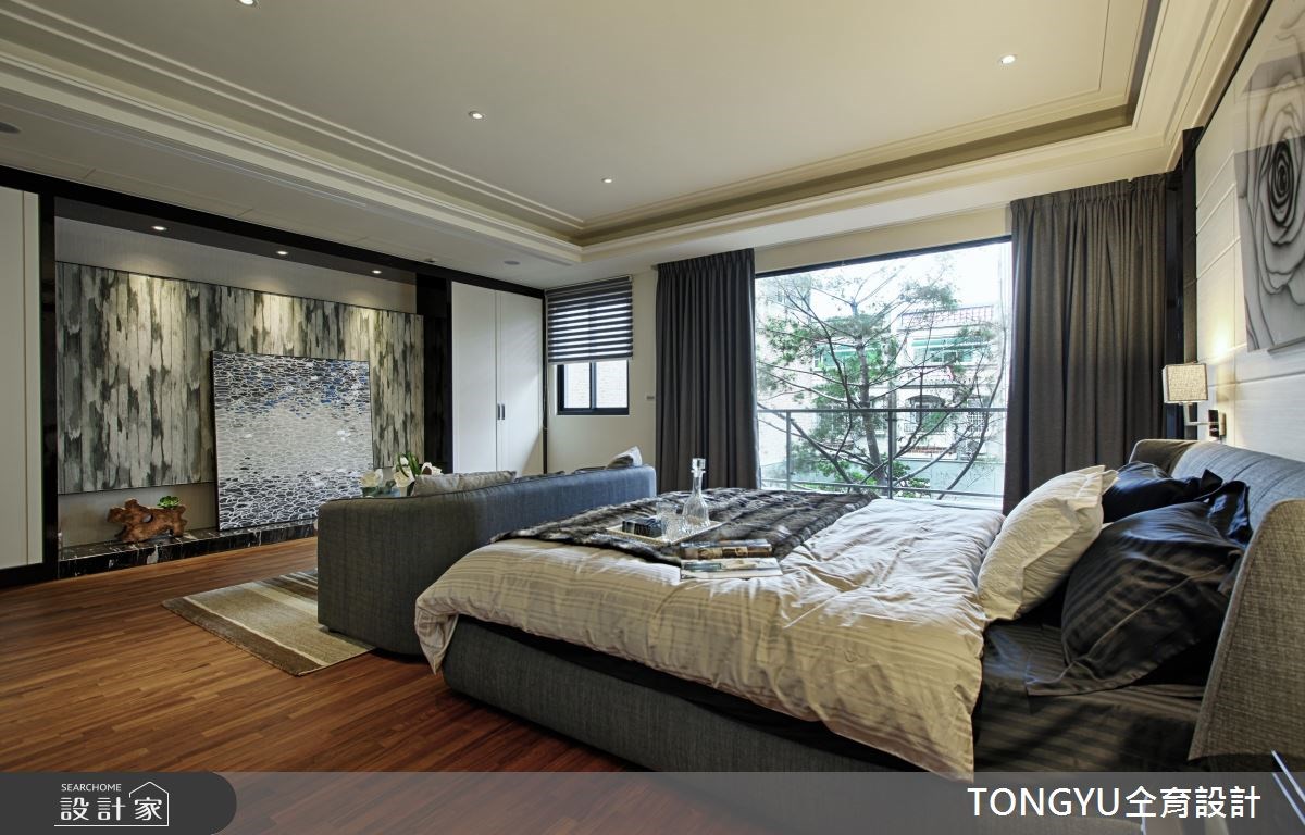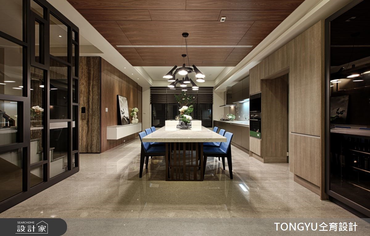 忙碌的都會生活,心中渴望擁有一處能沉澱、滋養心靈的靜謐宅居。現在,以都會時尚做為設計靈感,擁有大面採光的優勢,室內裡搭佐自然質感的木紋、俐落線條的石材,創造出低調卻品位依舊的百坪豪宅。 整體以開放隔局為規劃,隨著戶外光源的引入,形塑開闊舒心之感。電視牆以漸層的灰階石材拼接而成,搭配素雅的布面沙發、圓形茶几,交織出內斂且非凡氣度;餐廚領域透過細緻的鏤空鐵件屏隔,隱喻空間劃分,黑色的中島與櫥櫃門片,展現沉穩風範;藉由暖調木紋鋪陳天花板,並以黑色溝縫的造型、嵌燈設計為照明,與深色廚具相互呼應,而原木質感的肌理延伸至餐廳區的壁面,同時成為共用衛浴的隱藏門,替冷調的現代空間挹注溫潤氣息;餐廳桌倚靠整片落地窗,接引敞朗天光,且讓戶外的植栽、卵石等景致引入,形塑內外皆景的人文雅緻豪邸。 小編的最愛 私領域持續以簡約的設計語彙打造,還創造一處寬敞的夢幻更衣室,開放展示的衣櫃收納,展現獨特的時尚品味。