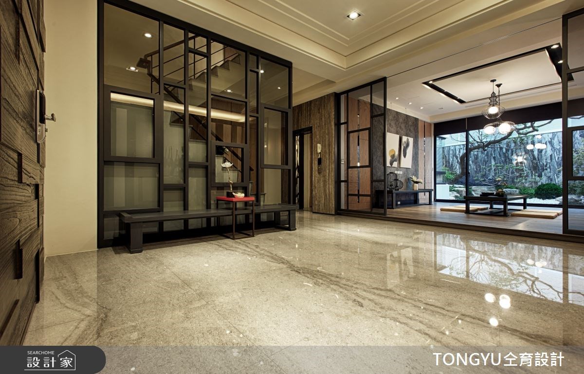 現代風人文居所,以「休閒」、「現代」、「人文」為設計主軸,選配存在感十足的特色傢飾,結合現代簡約創作手法,輔以在地人文氣息,呈現宜人舒雅的百坪好宅。 公共區域採開放式設計,將吧檯放置在公領域中心,作為連接客、餐廳橋樑,巧妙將不同機能的區域相互連結,同時擴大各區塊使用範圍。設計師運用灰玻、黑鏡、大理石等黑灰白色系搭配,為公領域打造低調奢華的質感氛圍,並運用木色系桌椅,增添一絲溫暖氣息。另外,透過玻璃穿透,除了能一賞庭院景觀,巧妙讓室外綠意及日光延伸入內,增添活力感。私領域的部分皆採用木質地板,並運用簡約設計呈現放鬆紓壓氛圍。在內斂簡約、融合質樸自然與開放光線的空間,使人思慮頓時沈澱,並將煩囂拋諸腦外。 小編的最愛 樓梯一上來的平台,打造成開放式書房或是休憩空間,將視覺感放大,發揮空間機能同時作為各樓層相互交流的公共區域。