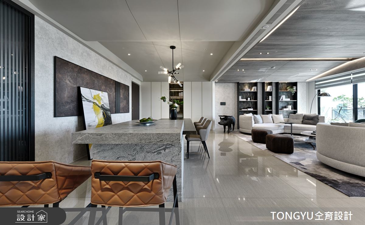 來自仝育室內裝修設計的123坪休閒風住宅案,是一間單層新成屋(5年以下)的三房格局,設計師藉由建材以卡拉拉白大理石、皮革、木皮、烤漆、壁布、玻璃、光带、镀钛金属的搭配應用,實現一家人的理想生活。