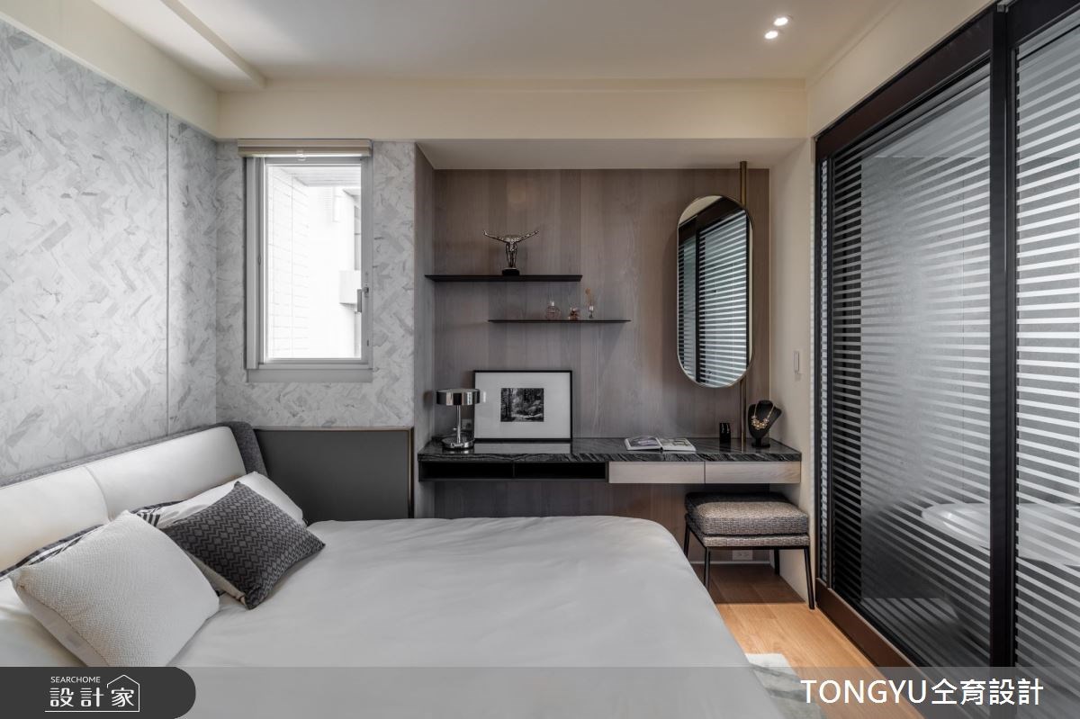 70 坪現代風大宅,以木紋石材與大理石紋定調主視覺,低彩度帶出內斂沉穩的空間氛圍,並運用綠色植栽點綴空間色彩及注入室內活力 ! 大面積石紋電視牆將客廳區視覺延伸放大,皮質沙發與地毯等軟件選用互相搭配,呈現低調奢華質感。餐廳區展示收納擺置許多美型花器,將植栽化身裝置藝術,增加空間色彩且提升公共空間的鮮活感。沙發後方進入私領域的廊道,運用拉門設計將臥房隱匿於公共區域。私領域利用木質感搭配柔和光線,營造睡鋪紓壓氛圍,並利用空間打造收納機能十足的專屬更衣間。 小編的最愛 其中一間臥房將書桌配置於睡鋪及臥榻之間,動線配置良好,將三個各自擁有不同機能的空間完美串聯。且利用深色系配件混搭木質元素,打造放鬆氛圍。