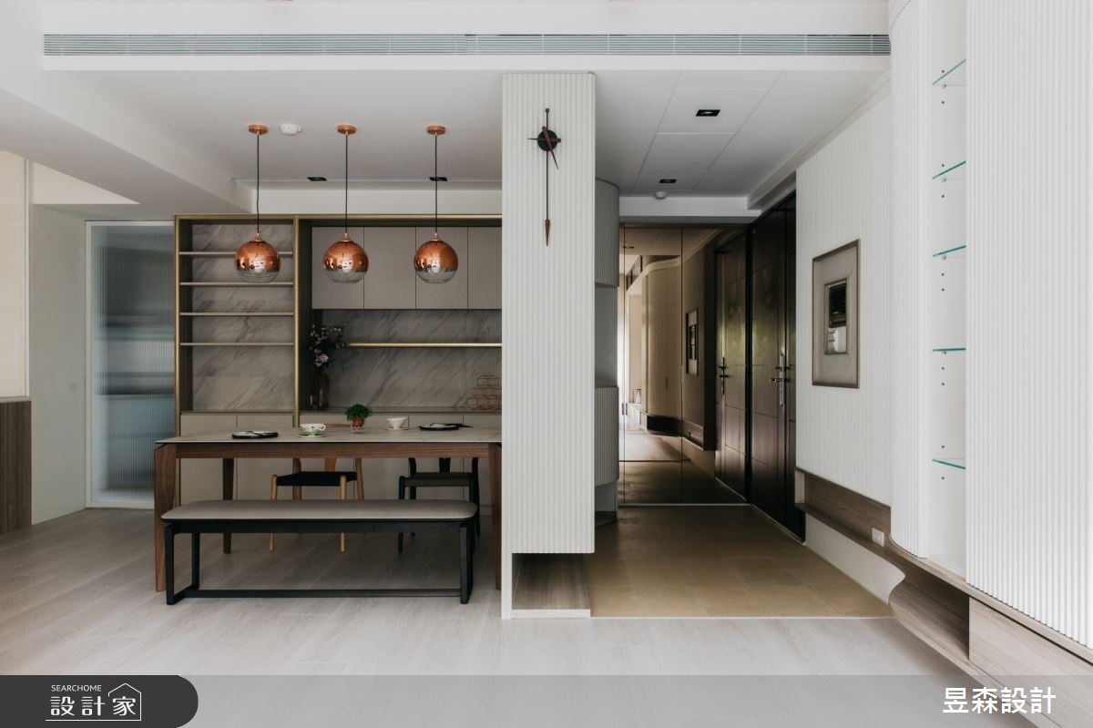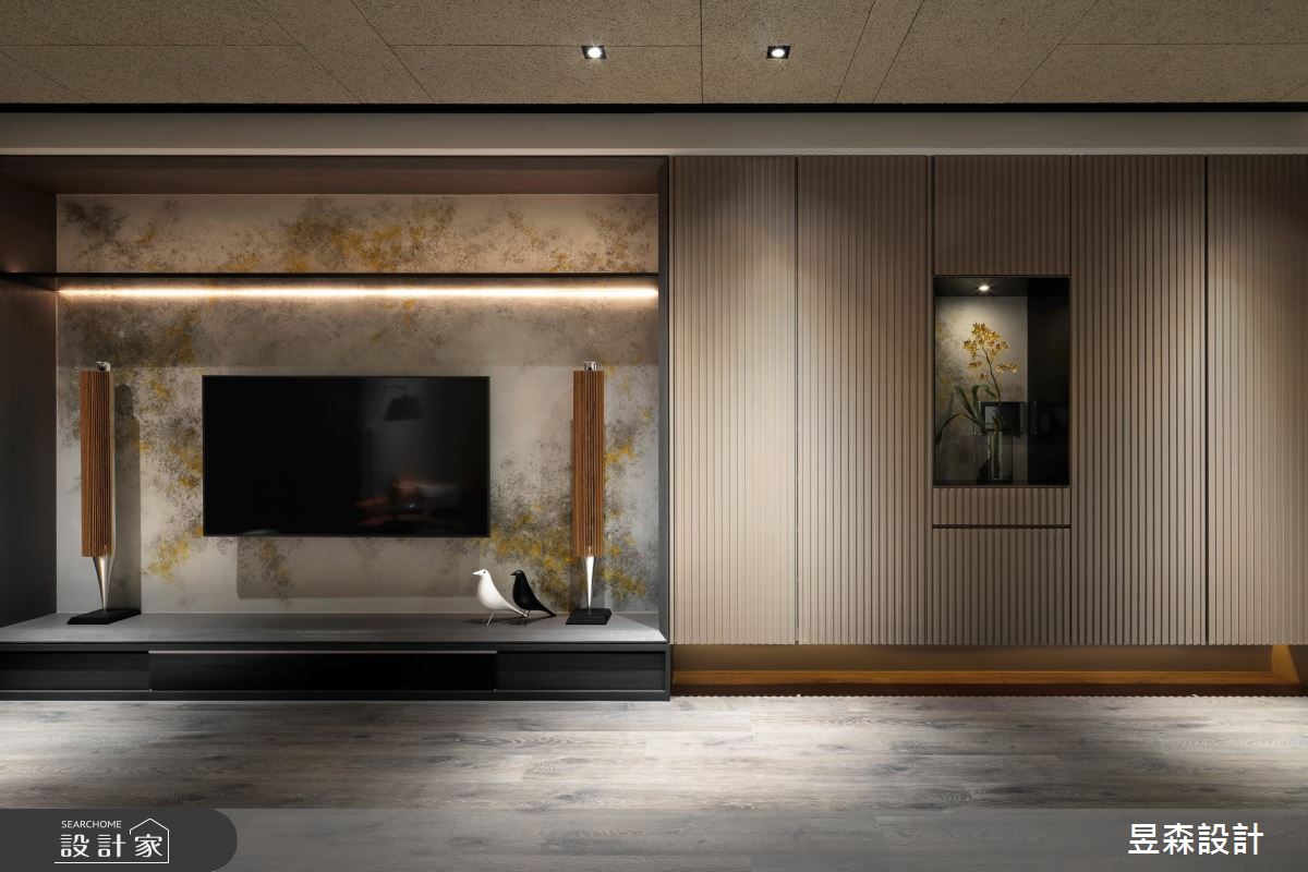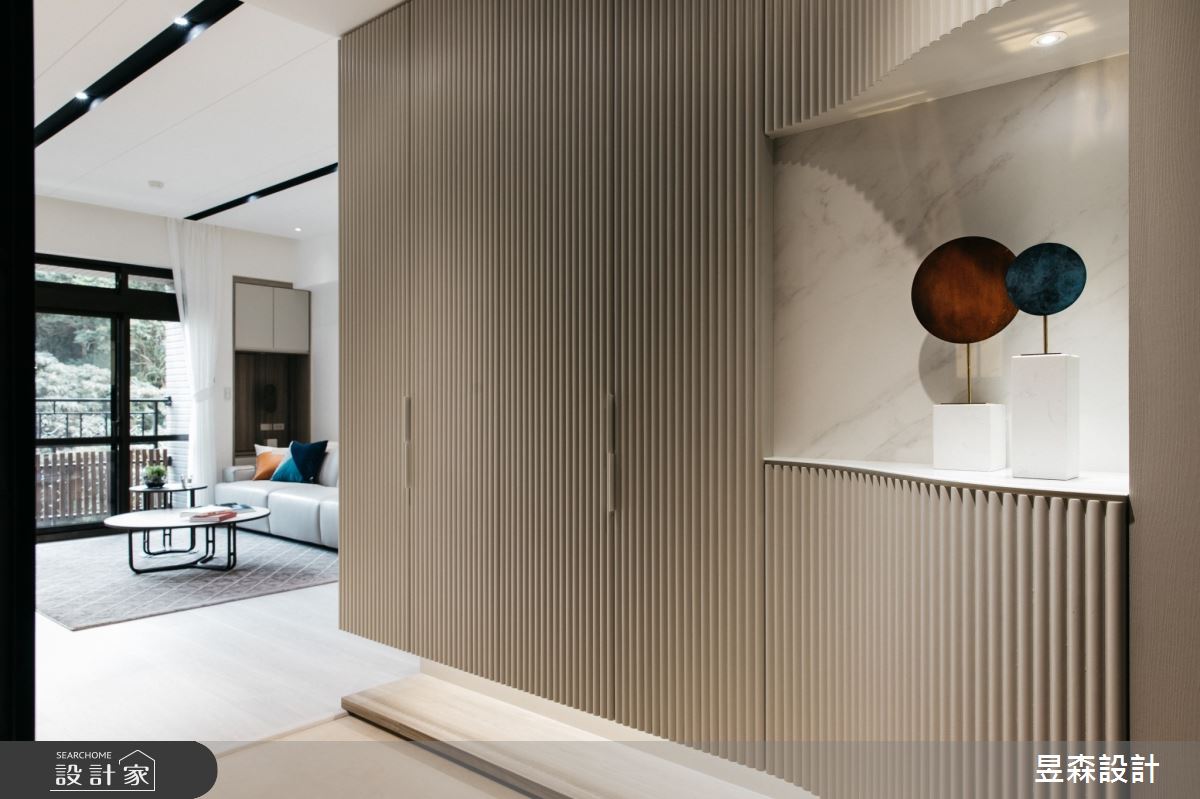 昱森設計呈現侘寂風居家氛圍,將此間35坪、四房、單層、新成屋(5年以下)打造成舒適愜意的家庭空間,完成全家人的夢想之居。