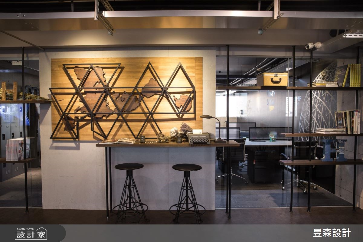 200 坪的辦公室原先屋齡已高,有著壁癌、漏水以及異味問題,且看昱森室內設計團隊如何在有限預算內解決基礎問題,並注入充滿個性的前衛風格! 本案雖屋況老舊,基地面積卻很大,讓設計團隊得以大刀闊斧發揮空間配置專業以及安全建設。設計師克服了空調與消防灑水管線的問題,將之與工業風格完美結合,形塑了整齊且俐落的天花板景象,並進一步位移了消防箱,與牆面融為一體。從櫃檯、公用辦公室以及會議室、私人會議室皆以 Loft 風為主,運用軌道燈、鐵件、清水模壁紙呈現前衛富有特色的風格,並以 OSB 板與木質家具平衡冷調氣息。本案業主為教育訓練規劃業者,除了打造可以容納超過 100 個私人公司的共同的辦公室,更有能討論、開會與受訓的場域,提供創業者舒適的空間。 小編的最愛 迎賓處以世界地圖立體燈箱造型以及粗獷的水泥紋路佐以 OSB 板拉出深邃視覺,最後加上造型沙發,創造開闊的溝通場域。