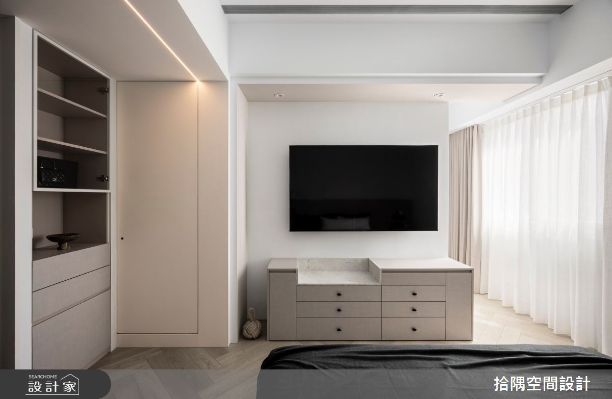 本案為拾隅空間設計的14坪現代風預售屋設計作品,格局為單層一房的居住空間。全室建材的搭配,應用超耐磨木地板、鐵件、系統櫃、花玻璃,展現溫馨的居家氛圍。
