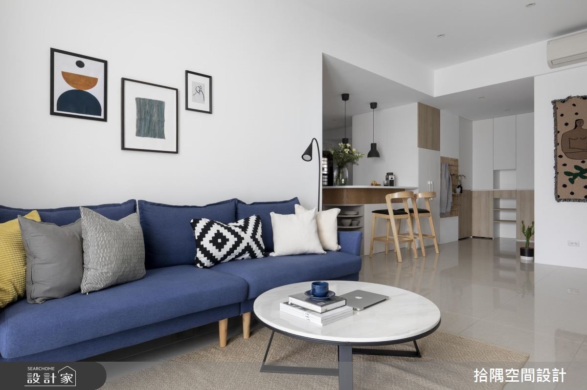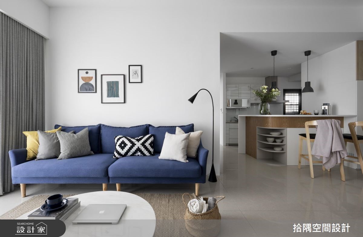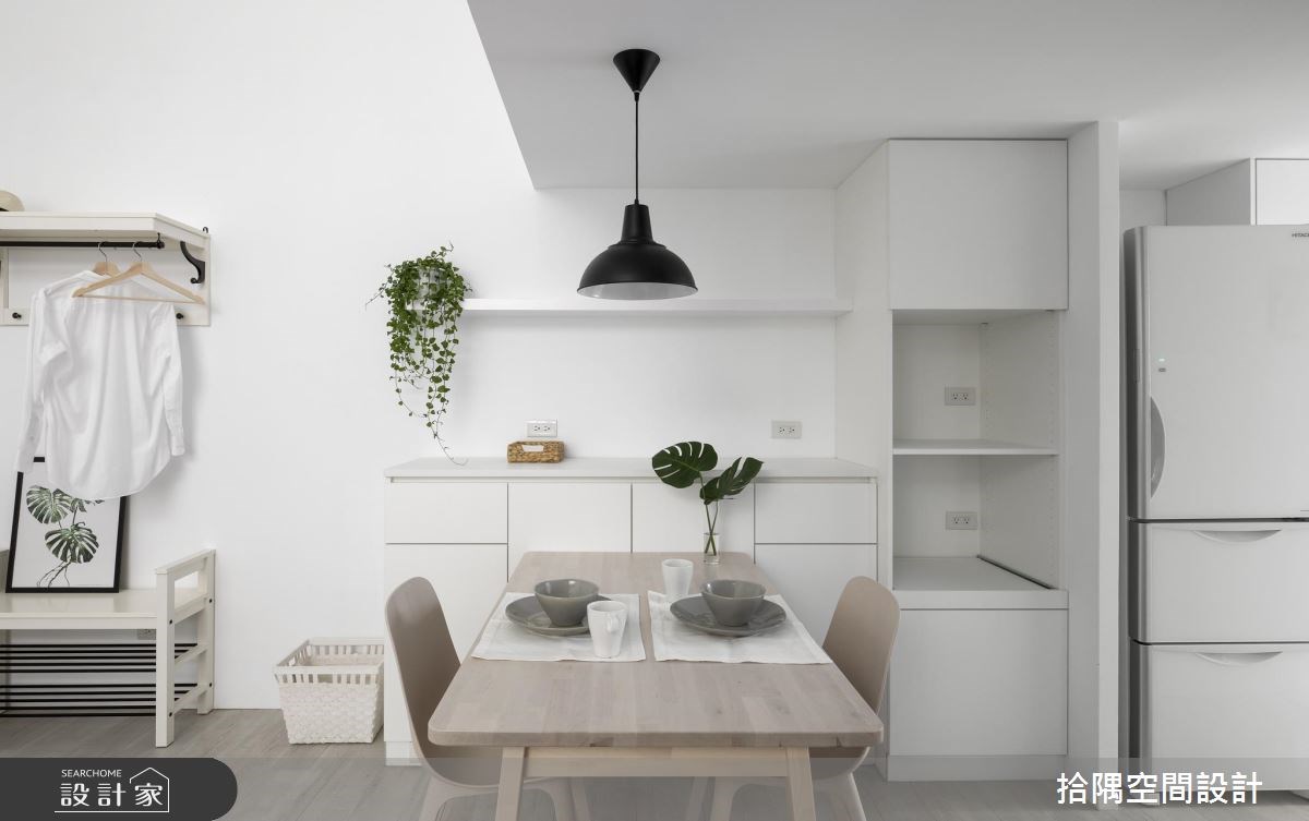 25 坪簡約風居家,丈夫將佈置完成的家當作給妻子的生日禮物,讓住宅不僅僅滿足生活需求,也成了情感延續的場域,快跟著小編一起來看看吧! 空間以建材原色作為基底,刻意於電視牆上方加入間接照明,讓牆面結構顯得輕盈無壓,並刻意讓收納櫃呈不落地造型,凸顯櫃體的輕盈度,一側刻意突出的延伸層板,則於上方擺置植栽,妝點寫意的綠意焦點,同時選用顯色的單椅與沙發,跳出輕盈的色彩亮點;吧檯則呈開放式規劃,刻意拉出流暢的轉角曲線,於吧檯底部結合餐盤置物機能、不浪費一絲坪效;臥房內,掌握純白牆面、木地板、美型收納等原則,兼顧美感與機能,描繪出無印系的舒適氛圍! 小編的最愛 拾隅空間設計重視空間與人的互動,以簡約的線條與材質,勾勒最舒適的空間佈局,搭建出具有獨到品味的質感居所!