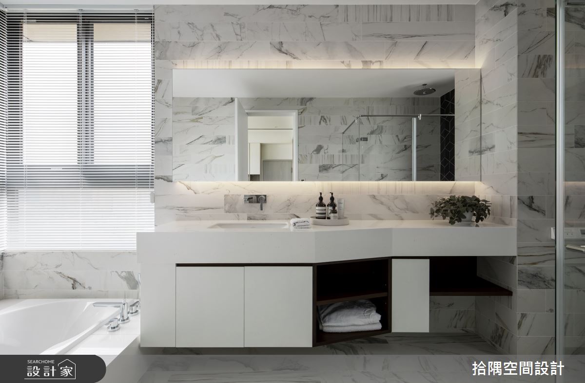 67坪的混搭風居家位於河岸旁,設計師利用原有的大面開窗,引大自然入室,並減少隔間,以公共場域為生活重心,藉由材質、色彩及量體之間的變化,打造豐富的住宅空間,請跟著小編一起來看看吧! 從大門進入後,灰白牆面上一束光線延伸至天花搭配鏤空側面白色柱體展示櫃,帶出空間設計感。而客廳則以淺色為基調,白色大理石牆面增添空間層次。窗邊的臥榻為室內外做連結,並兼具收納與座位的作用。臥榻延伸至落地窗,順勢下降與陽台水平,延攬室外風光。中島區天花則利用深褐色線條與折線展現利落的空間語彙,並透過局部的金屬色系聚焦視線。私領域則回歸最單純的睡眠品質,且延伸公領域與窗外連接的主軸,將床頭面向室外景色,而床頭櫃後方凹陷賦予書桌及化妝台功能,金屬拉門則隔出女主人的化妝櫃與更衣空間。 小編的最愛 在這個空間裡,每個角落街自成一格,走到每處都是一幅畫,各自閃耀,但卻透過相同元素、語彙相互連結而沒有違和感。