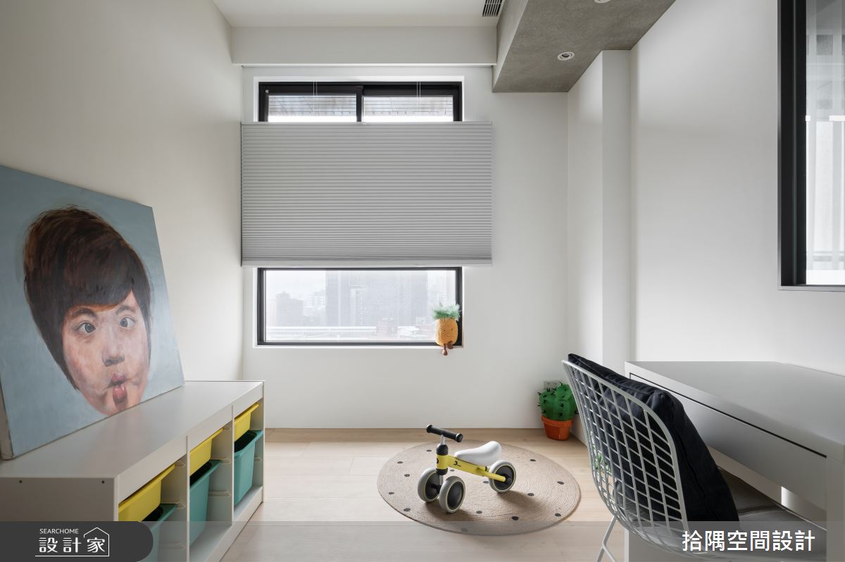 來自拾隅空間設計的13坪混搭風住宅案,屋主一家人共有1位大人,是一間單層新成屋(5年以下)的兩房格局,設計師藉由建材以超耐磨木地板、鐵件、人造石、特殊塗料、實木皮板、系統櫃、油漆跳色、灰玻的搭配應用,實現一家人的理想生活。