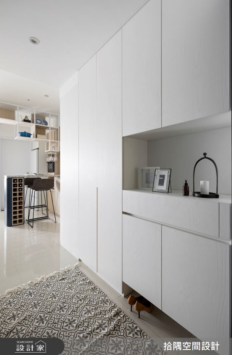 別讓坪數大小限制了你對生活的想像。潔白的14坪空間不見多餘的裝飾,簡潔設計把紛擾的城市噪音隔絕在外,用俐落的美式線條混搭水泥元素,打造小宅內的明媚風光。 推開大門,仿清水模地磚襯著空間,潔白中帶著淺灰的色調在明亮採光下顯得格外清新舒爽,客廳大面積的採光窗,以對稱設計規劃兩側收納;位於中央的臥榻是留給女主人的VIP座位,在家庭與工作之間,也能找到一處放鬆自我的地方。美式風格俐落的線條融入白牆,臥榻上抓皺的軟墊以及米色布面沙發,體現都會女子獨立而溫柔的形象。 餐廚區經典的白色地鐵磚鮮明了美式風格,在有限的空間內,拾隅設計透過比例配置打造出擁有迷你中島的餐廚空間;善用方形中島下方的置物空間,提供客廳與廚房雙面的收納機能。寢居室減少美式線條,僅展現床頭木板拼接的原始風貌,將獨立更衣間隱藏於滑門之後,讓睡眠空間回歸恬靜。小孩房不見繽紛的色彩,一樣潔白的設計藉由書桌前的洞洞板與黑板,還有開放至物層架,留給孩子自由發揮創意與想像。 小編的最愛 客廳窗下,坐在陽光灑落的臥榻,不需要打造一個獨立的書房,僅14坪大的空間中也有辦法享受到獨處的美妙時光。