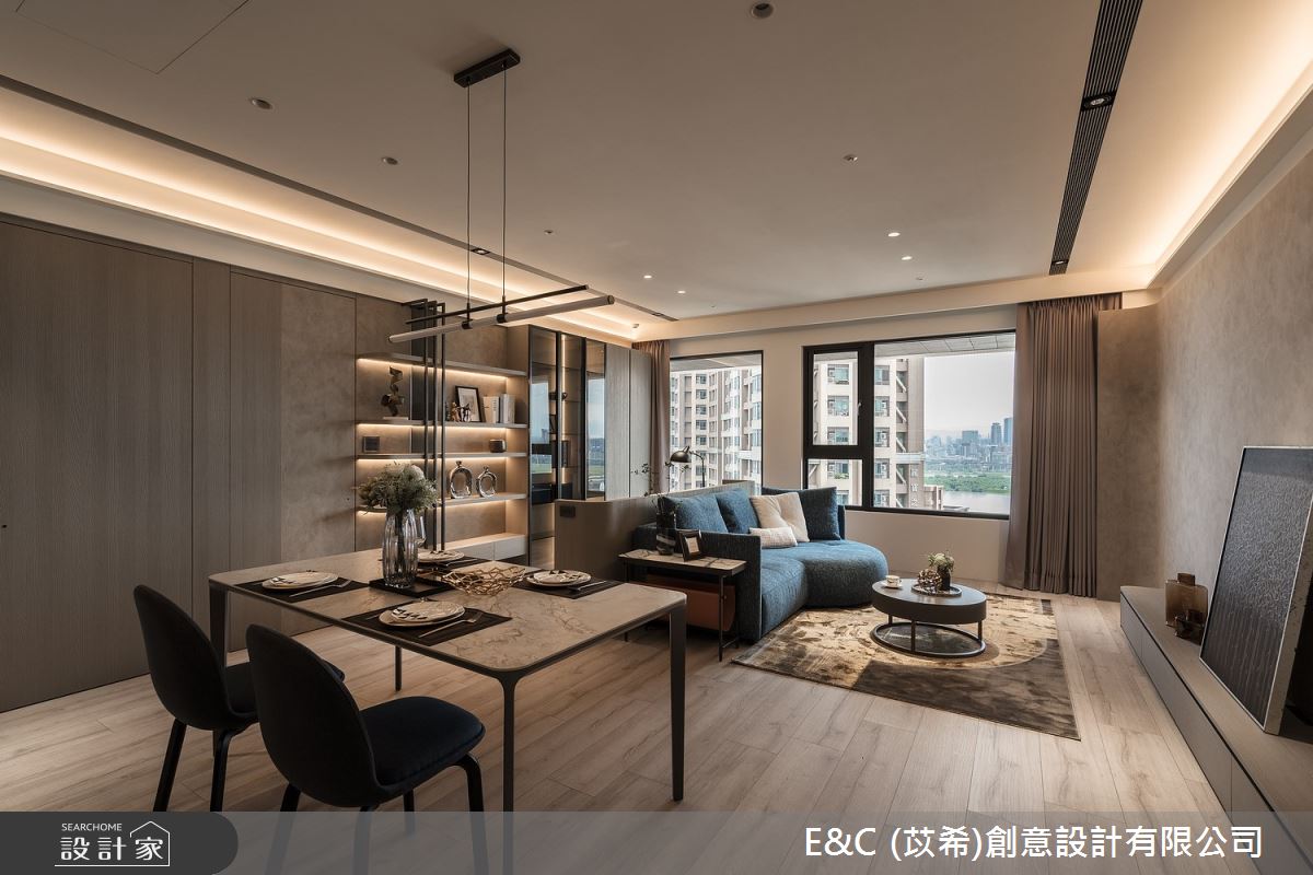 由苡希E&C創意設計精心規劃的45坪三房住宅空間,家庭成員一共有4位大人。因應屋主需求,設計師運用現代風作為主軸,搭配乳膠漆、海島型木地板、超耐磨木地板、鐵件、灰鏡、烤玻、木作貼皮、系統板材、磁磚、大板磚、石英石,打造全家人的夢想家居。