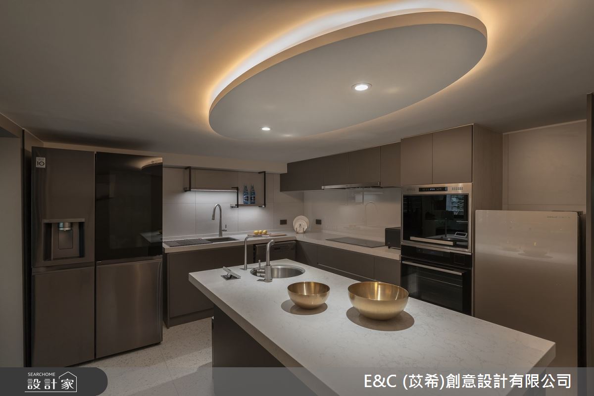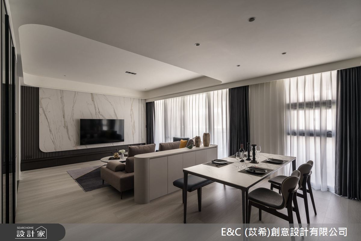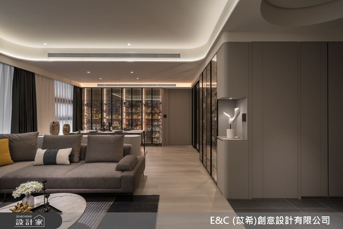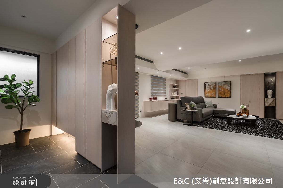 由苡希E&C創意設計精心規劃的61坪三房住宅空間,家庭成員一共有2位大人、2位小孩。因應屋主需求,設計師運用現代簡約風作為主軸,搭配油漆、石英磚/拋光石英磚、灰鏡、鍍鈦金屬、木作貼皮、皮革、繃布,打造全家人的夢想家居。