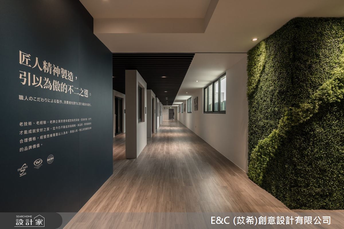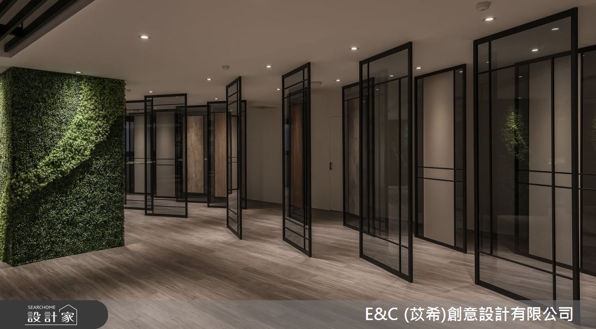 苡希E&C創意設計以油漆、大圖輸出、超耐磨木地板、磁磚、軌道燈、植生牆的搭配應用,呈現現代風的風格氣息,將此間127坪優雅詮釋成舒適愜意的商業空間。