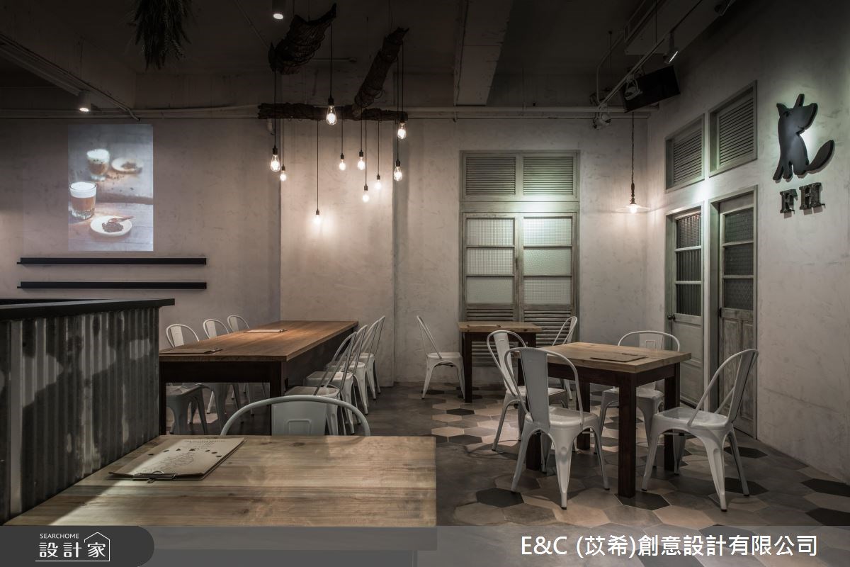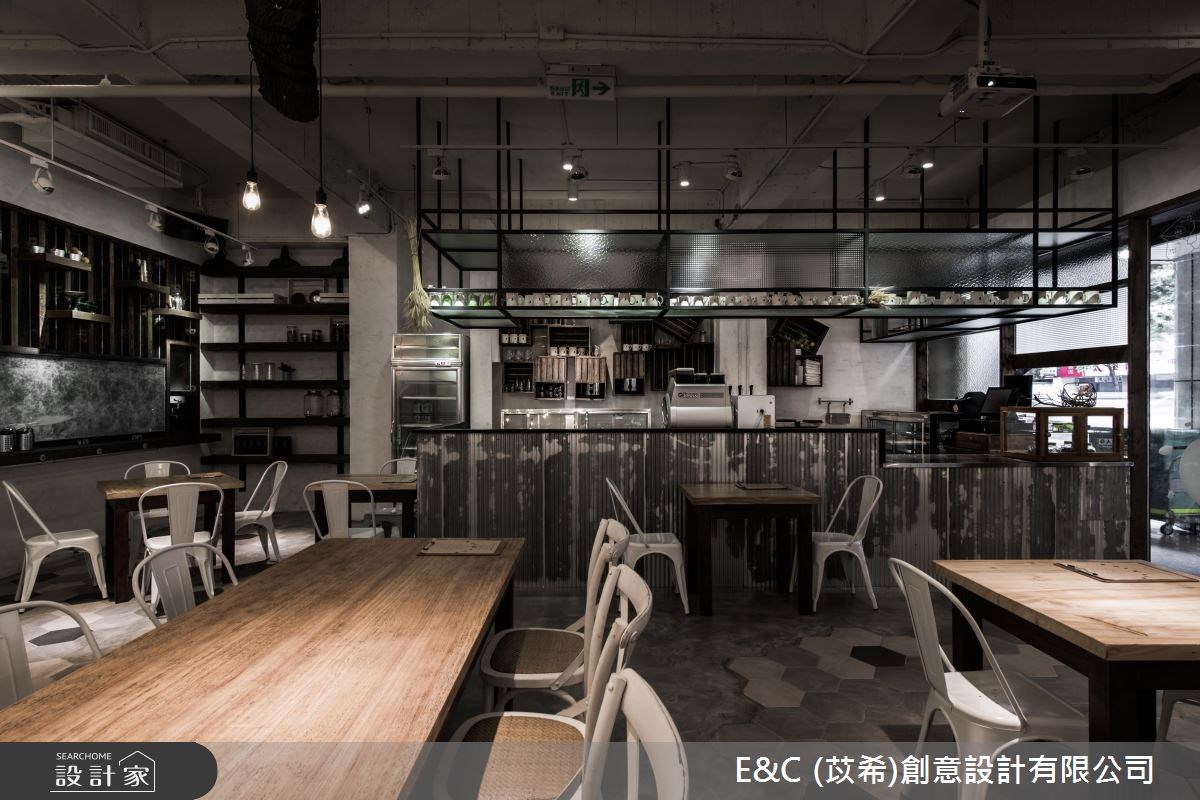 以舊木頭、鐵件為材質,創造出Loft感的空間氛圍,自然不造作的特質呼應品牌回歸新鮮食材的實踐,更藉由裝修手法,讓走進空間裡的人們品嘗天然果露的同時,也能透過自然無華的室內設計,感受最簡約的美好生活。 店面外觀以玻璃圍塑,穿透的視覺感展現出空間裡的層次,同時讓街道上的人們可一眼欣賞其風格陳列;室內裡,管線遊走在裸露感的天花板,軌道燈、鐵件吊燈予以點綴,鐵件搭建的收納架懸掛而下,營造出一片原始、自然的空間情境;水泥粉光鋪陳周圍的壁面,局部地面鋪設六角磁磚,挹注些許活潑氣息,斑駁感的波浪板成為吧檯的立面造型,呼應工業風的空間主題,吧檯後方藉由舊紙箱堆疊出製作咖啡的器皿、杯盤陳列區,展現不加修飾的人文藝術之美;原始木頭的質材成為餐桌最自然的風貌,搭佐白色調的鐵件椅,流露出loft的俐落ㄧ面,用餐區的兩側壁面以舊門扇作為不同領域的通道,角落裡則以仿舊木頭創造收納機能。 小編的最愛 局部空間裡讓小燈泡以垂掛式點綴,宛如繁星點點,替仿舊、幽暗的空間帶來些許光亮,成為一處迷人的景緻。