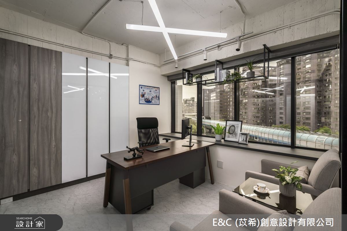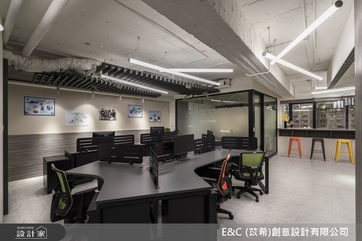 由苡希創意設計精心規劃的26坪商業空間,因應業主需求,設計師運用工業風作為主軸,搭配建材油漆、磁性漆/磁性黑板漆、PVC地板、鐵件、茶玻、木作貼皮、烤漆、壓克力、噴漆,打造精緻品味的空間氛圍。