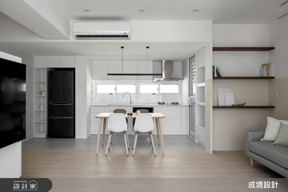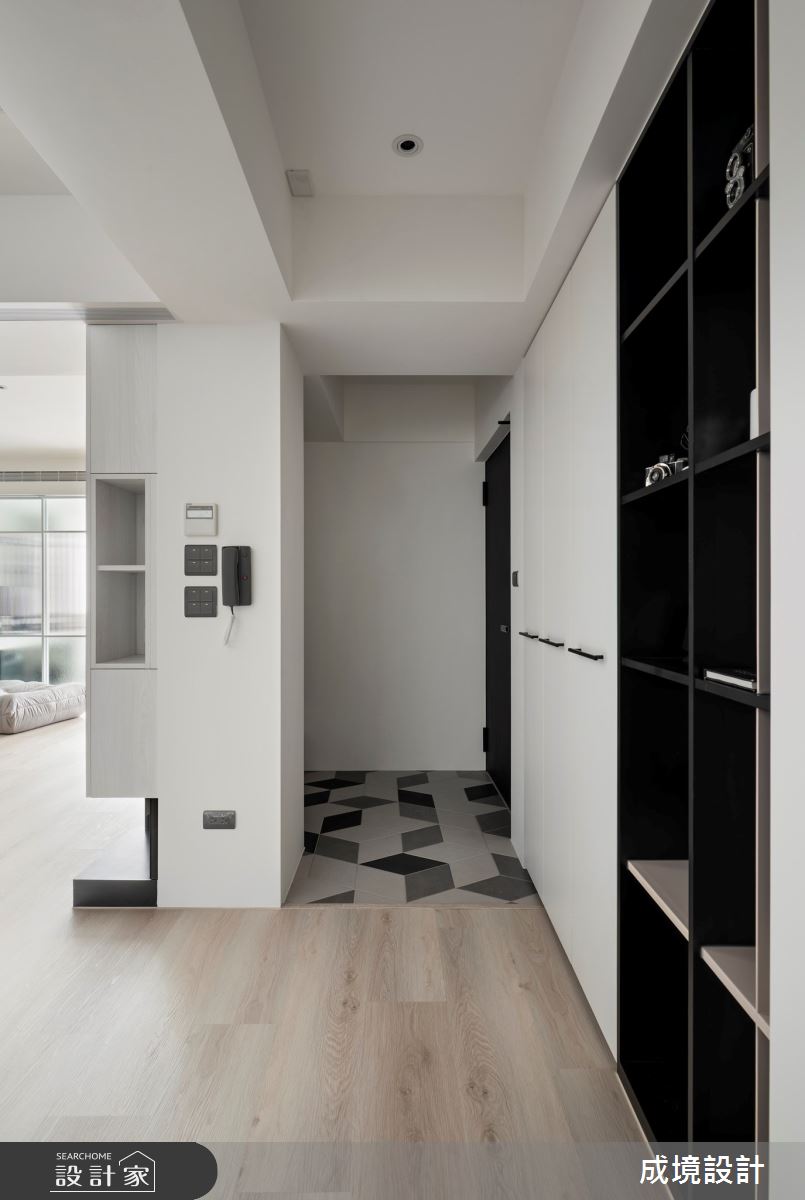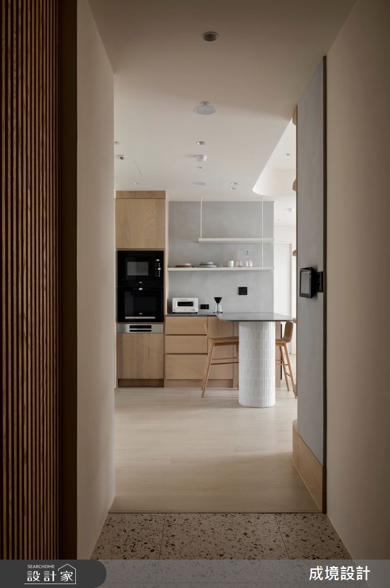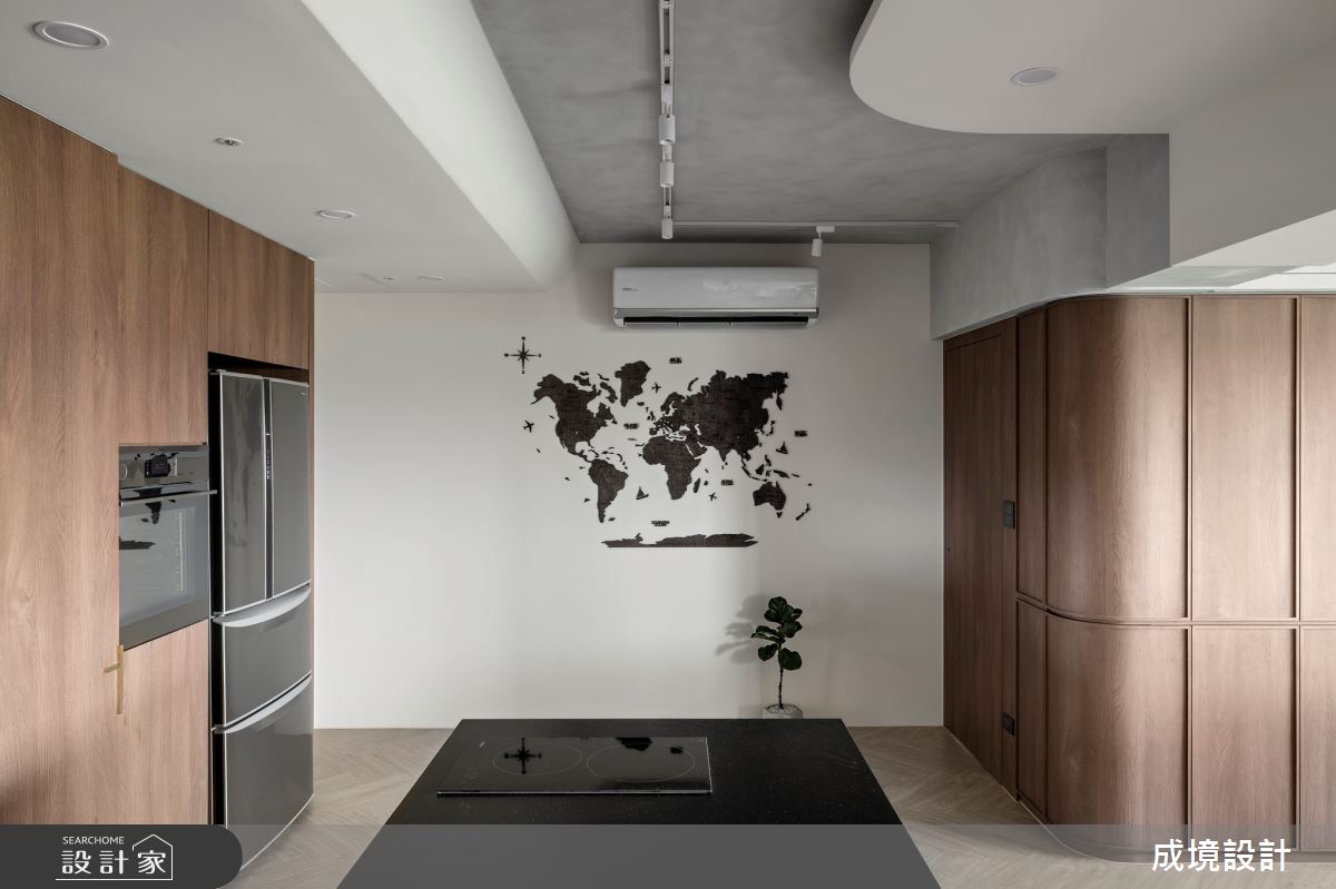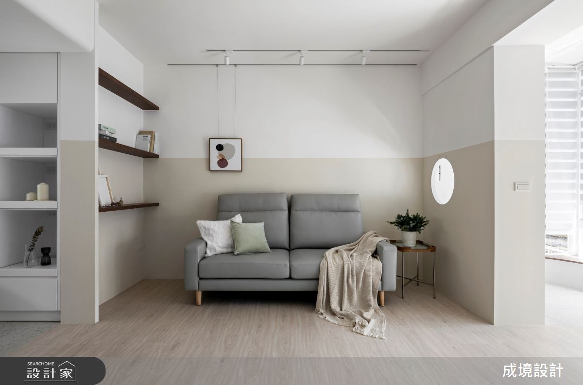 由成境設計精心規劃的30坪兩房住宅空間,家庭成員一共有2位大人。因應屋主需求,設計師運用現代風作為主軸,搭配油漆、乳膠漆、六角磚/蜂巢磚、超耐磨木地板、石英磚/拋光石英磚、鐵件、木作貼皮、烤漆、鋼刷木皮、系統板材、大理石、磁磚、水泥/水泥粉光、人造石、賽麗石、軌道燈、噴漆、烤玻,打造全家人的夢想家居。
