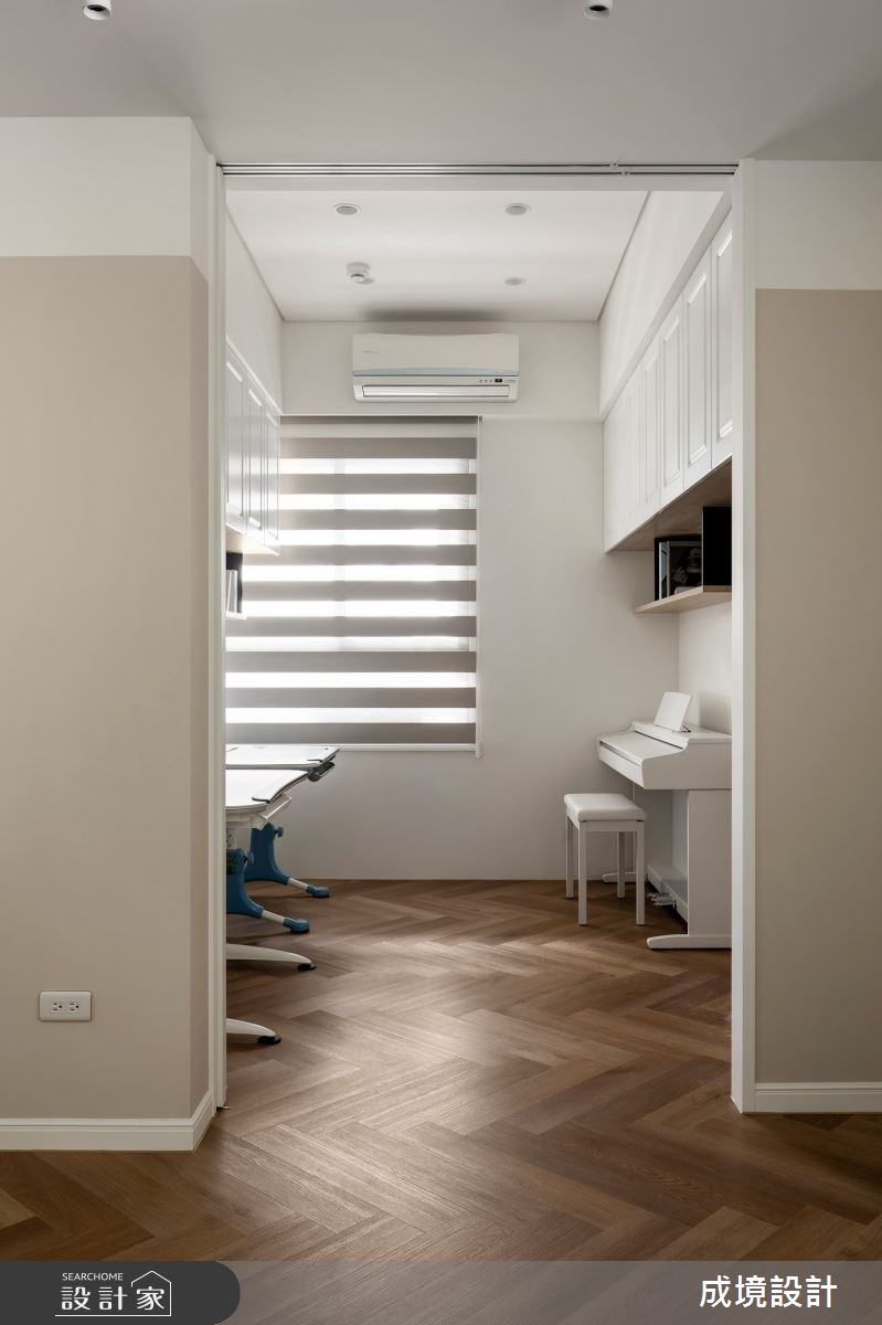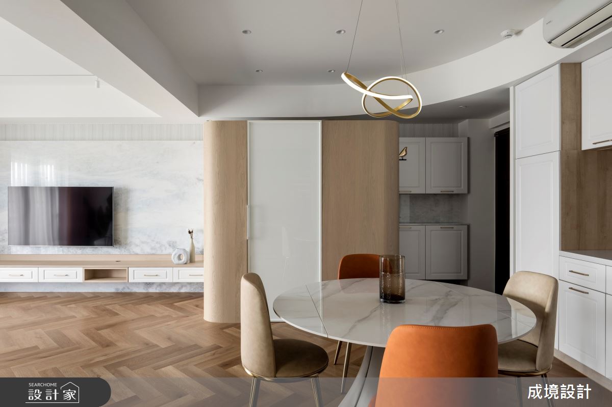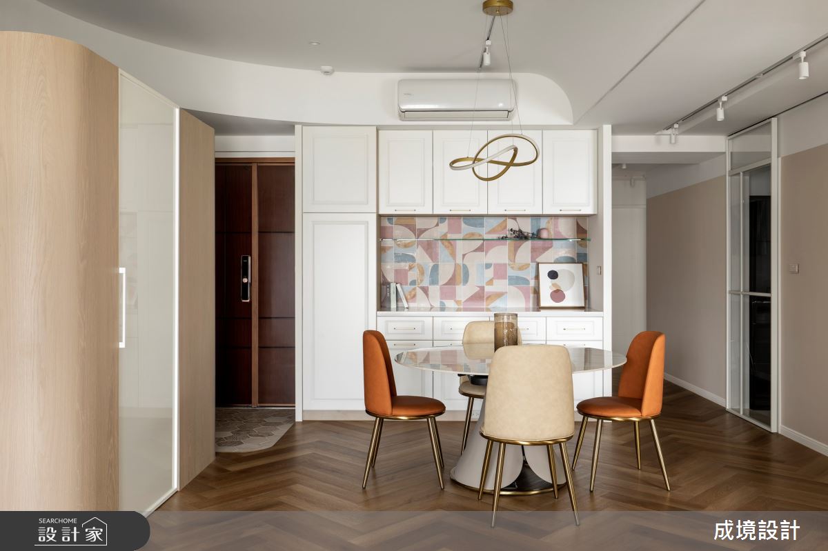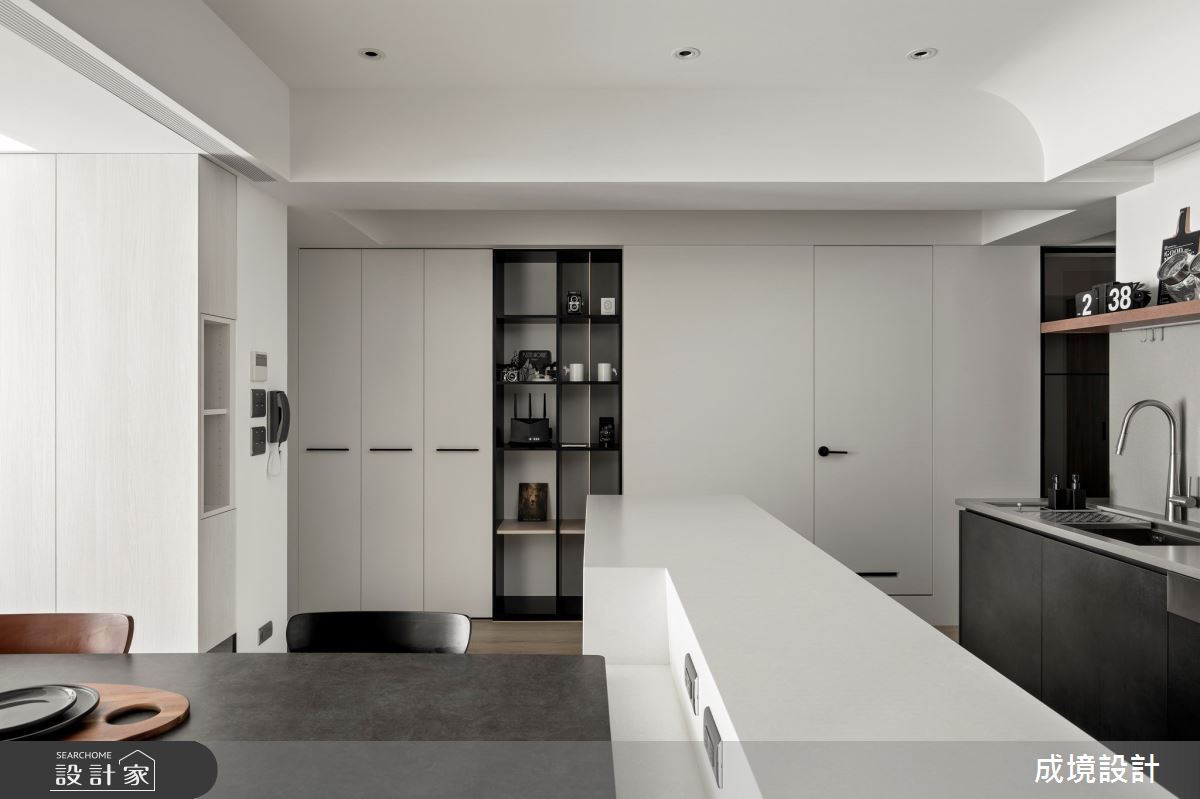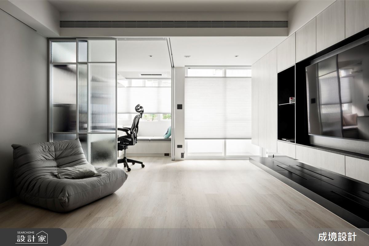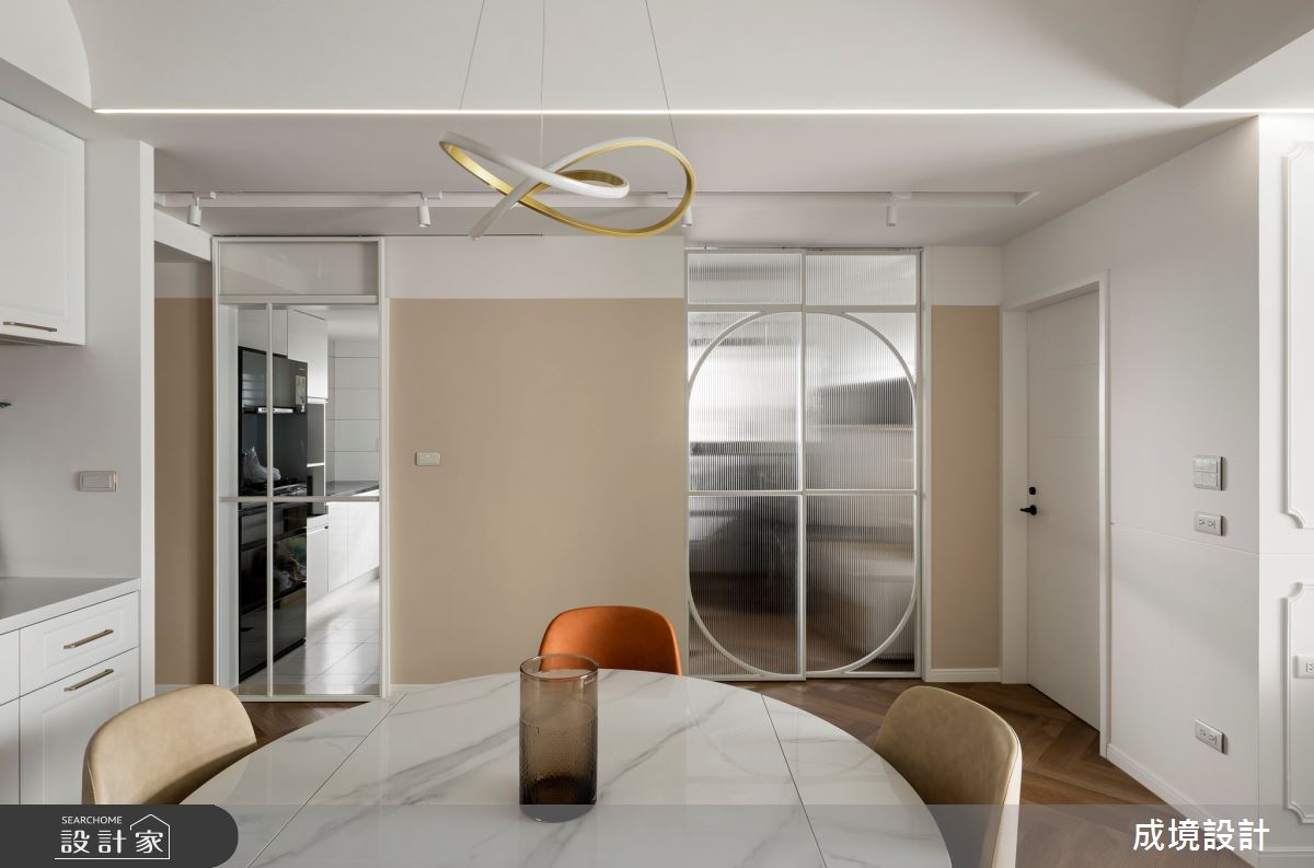 由成境設計精心規劃的30坪兩房住宅空間,家庭成員一共有2位大人。因應屋主需求,設計師運用現代風作為主軸,搭配油漆、乳膠漆、六角磚/蜂巢磚、超耐磨木地板、石英磚/拋光石英磚、鐵件、木作貼皮、烤漆、鋼刷木皮、系統板材、大理石、磁磚、水泥/水泥粉光、人造石、賽麗石、軌道燈、噴漆、烤玻,打造全家人的夢想家居。