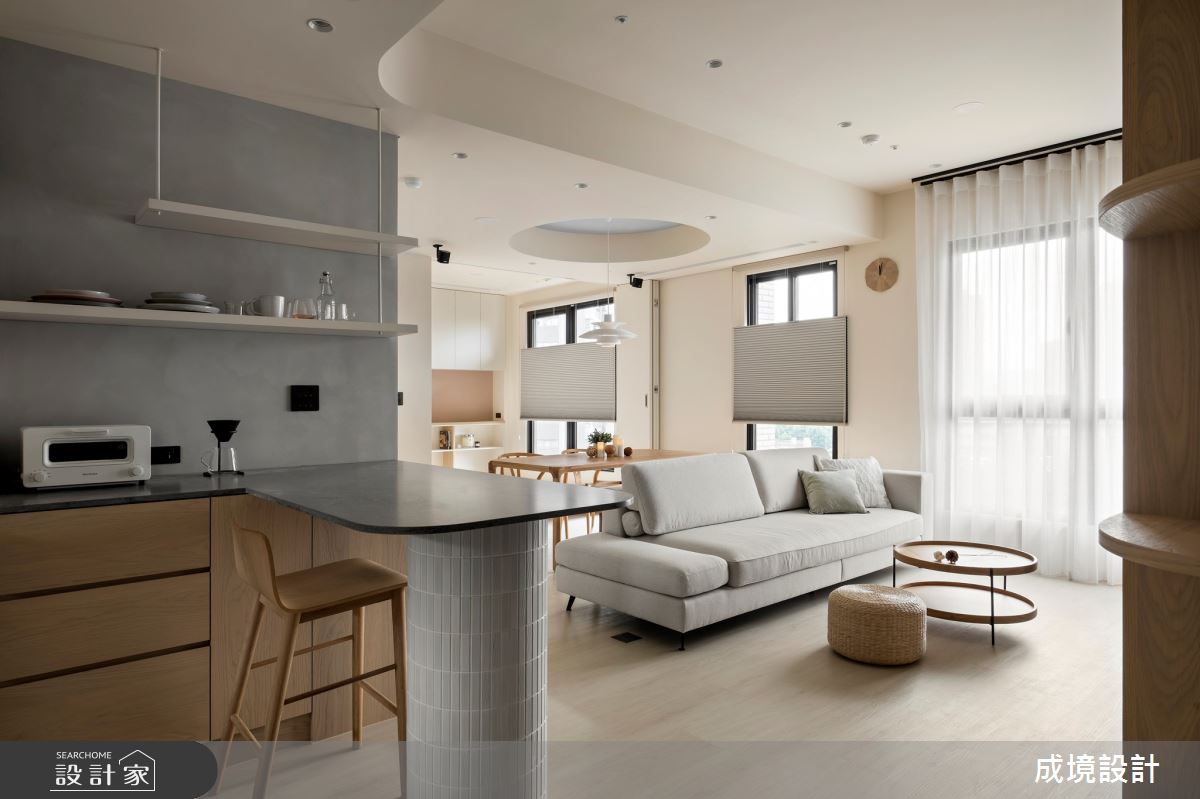 來自成境設計的22坪簡約風住宅案,屋主一家人共有2位大人,是一間單層新成屋(5年以下)的兩房格局,設計師藉由建材以乳膠漆、花磚、超耐磨木地板、鐵件、木作貼皮、烤漆、鋼刷木皮、系統板材、大理石、磁磚、樂土、人造石、賽麗石的搭配應用,實現一家人的理想生活。