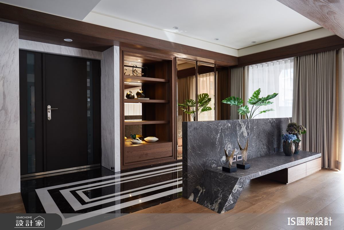 老屋經過歷史的痕跡與時光背景的遷移,常有許多地方不堪使用或是不符合現代人的需求,像這間三十幾年的住家就有著動線不佳、天花低矮、採光不良等問題,IS國際設計陳嘉鴻設計師透過格局重整,賦予房子新生命,打造大器舒適的現代宅邸,請跟著小編一起來看看吧! 一進入室內,玄關與公共空間以地坪做界定,黑底白框線條為現代風空間展開序曲。客廳以大面白色石材鋪成展現開闊卻不沈重的視覺印象,灰色石材電視牆運用半牆形式令空間得以通透放大,並與客廳角落一隅牆面相互對應。沙發旁側的書房則以茶鏡拉門延伸場域,並在動靜之間享有個人隱私。用餐空間結合廚房,並回應屋主的生活習慣,中島吧台亦是餐桌,既實用又時尚。轉入臥房空間,大量的深色木質調搭配床頭的間接燈光營造舒眠氣氛。 小編的最愛 公共空間中大面使用白色石材,細膩襯托出空間的奢華尺度,卻不顯得沈重老氣。