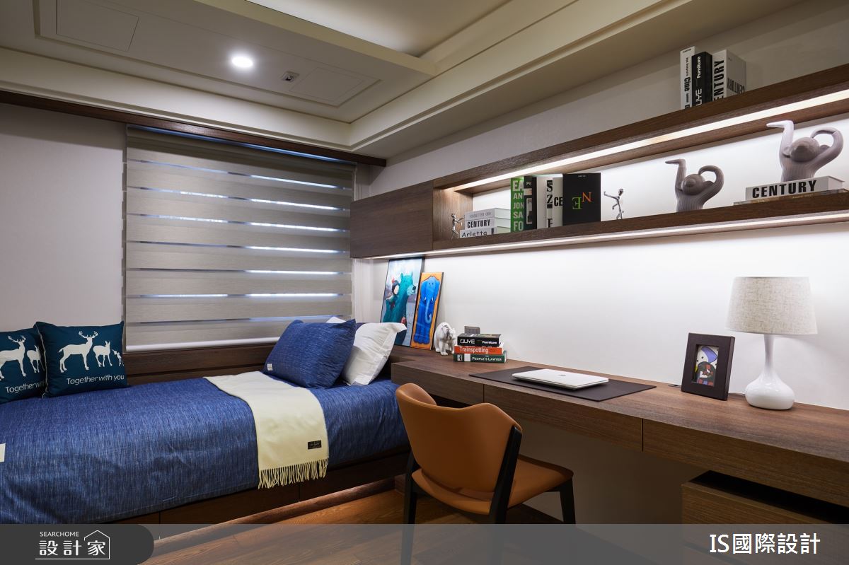 本案為IS國際設計的41坪現代風新成屋(5年以下)設計作品,格局為單層三房的居住空間。居住成員包含2位大人、3位小孩。全室建材的搭配,應用乳膠漆、壁紙、海島型木地板、石英磚/拋光石英磚、鐵件、灰鏡、烤玻、鍍鈦金屬、木作貼皮、鋼刷木皮、大理石、繃布、線板,展現溫馨的居家氛圍。