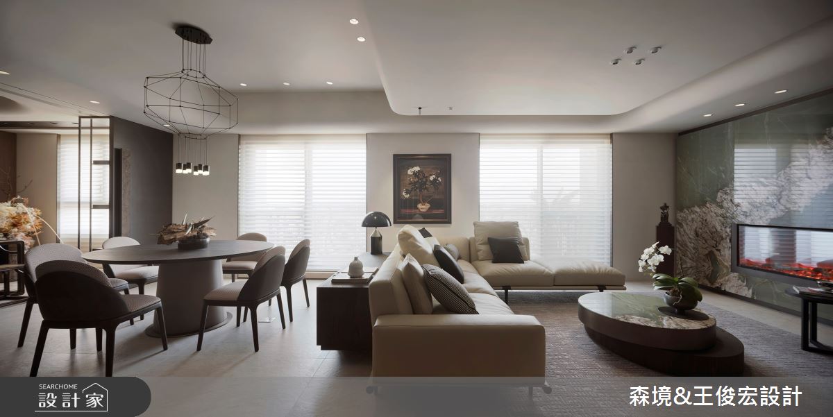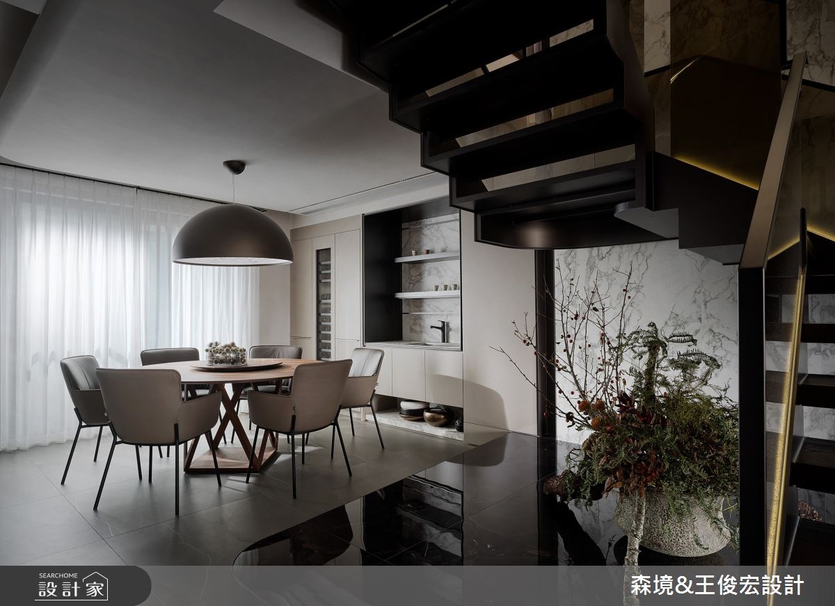 來自森境+王俊宏設計的60坪現代風住宅案,屋主一家人共有3位大人、1位長輩,是一間單層新成屋(5年以下)的四房格局,設計師藉由建材以奢石、大理石、薄板、鋼刷木皮染色、金屬鐵件、超耐磨木地板的搭配應用,實現一家人的理想生活。