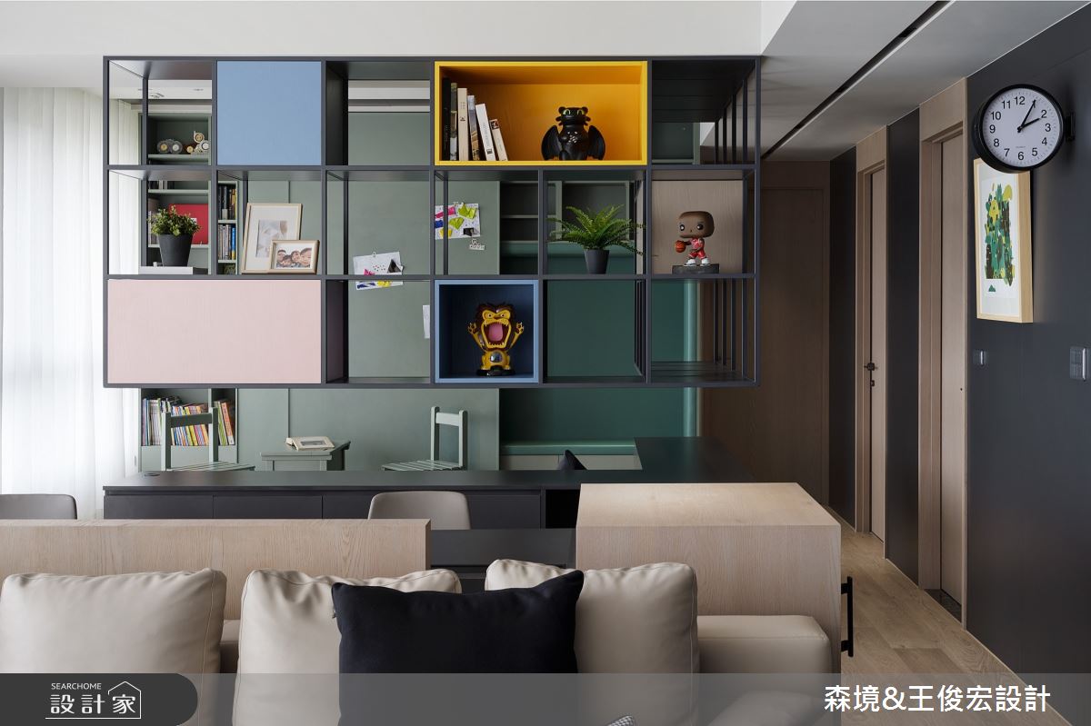 森境+王俊宏設計以先施家飾、FENIX、美耐板、龍鳳石、地毯、活邑窗飾的搭配應用,呈現現代風居家氛圍,將此間27.5坪、兩房、單層、中古屋(5~15年)打造成舒適愜意的家庭空間,完成全家人的夢想之居。
