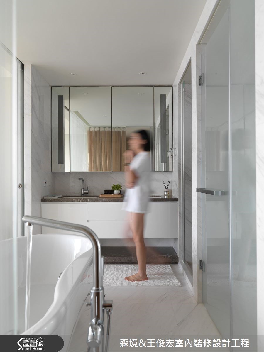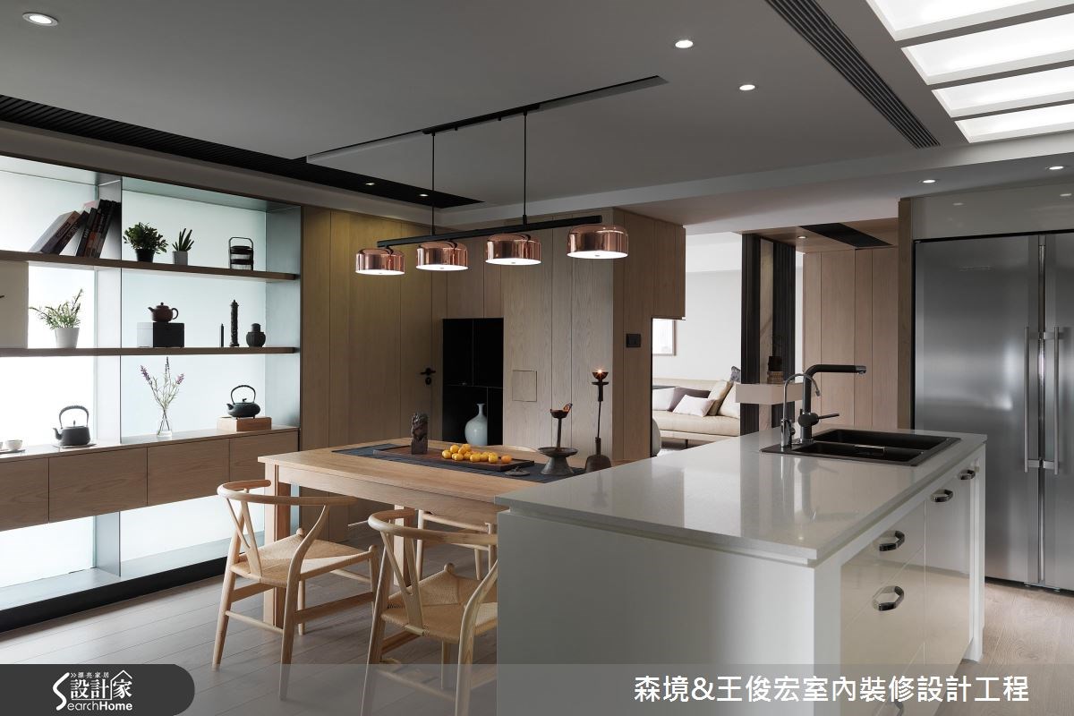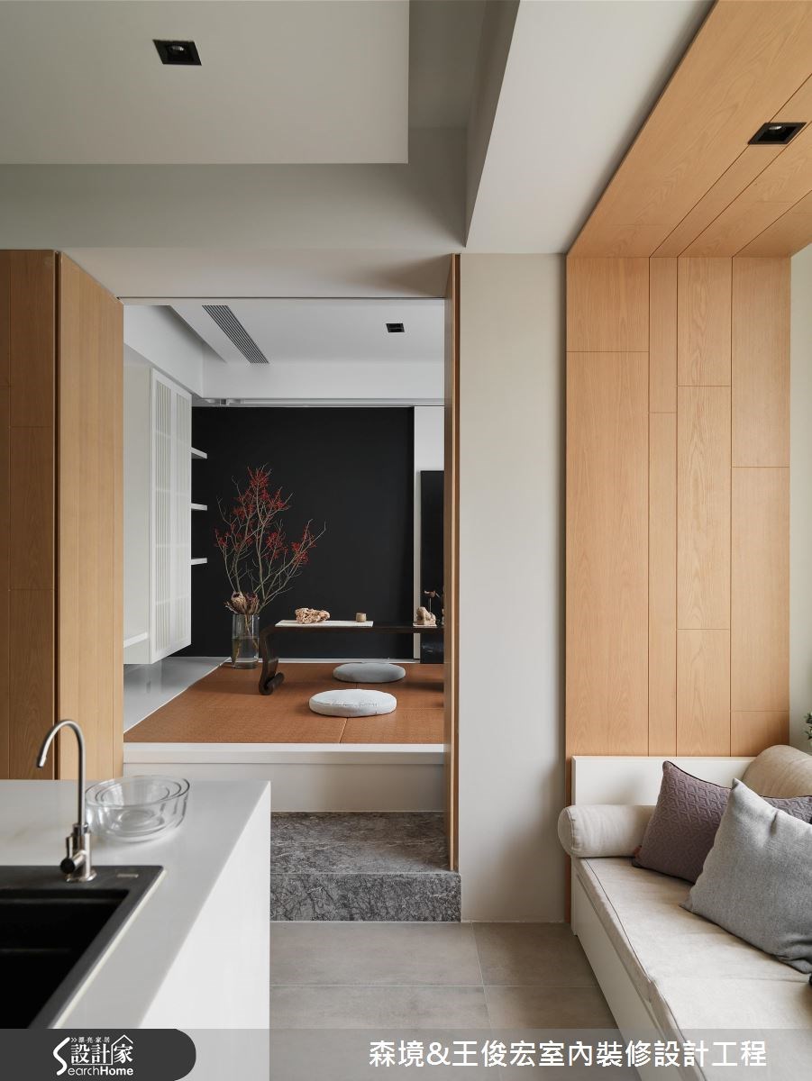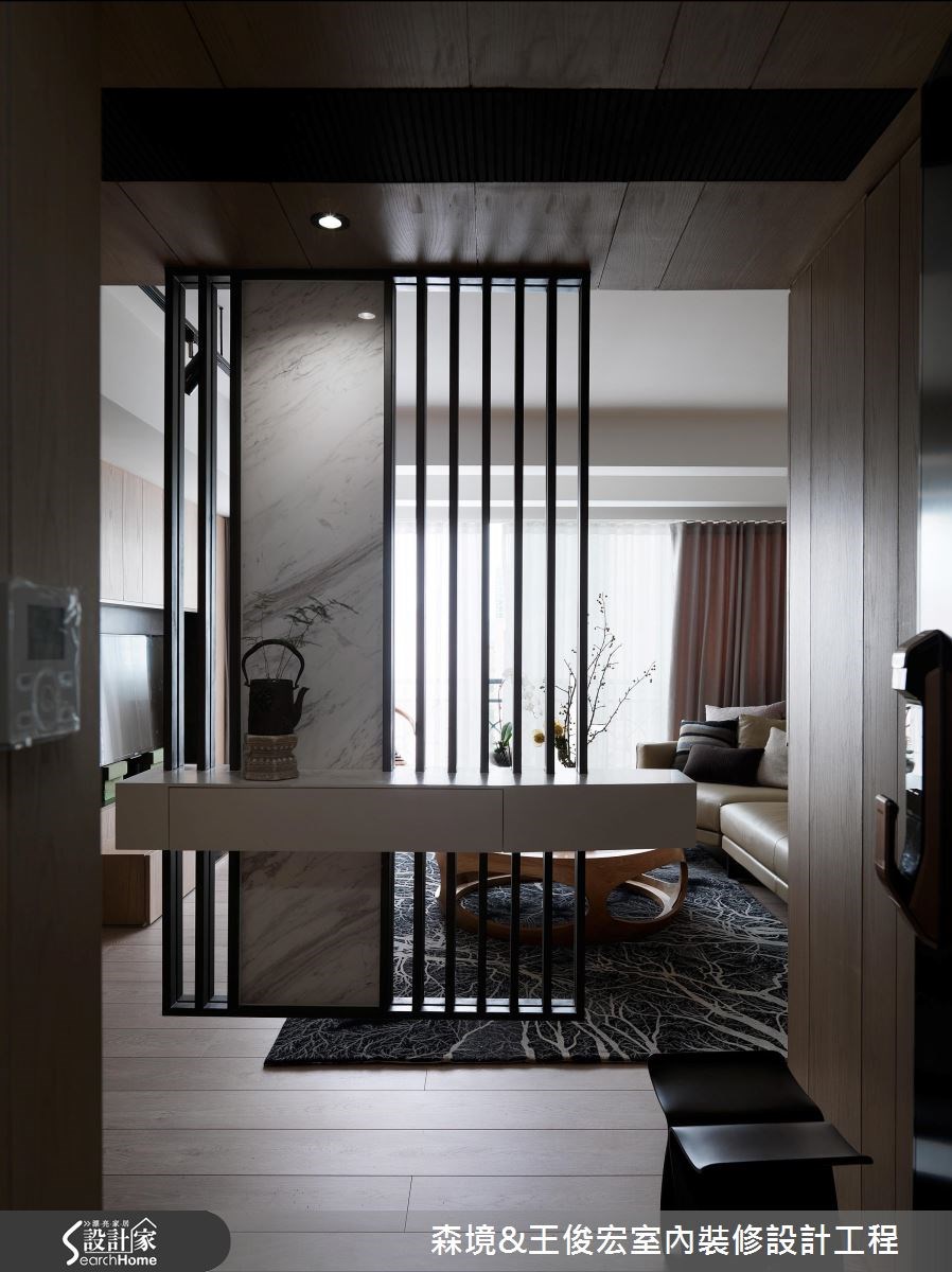 不是所有裝修,都需要大刀闊斧拆牆、動格局,森境&王俊宏設計團隊,這次以舉重若輕的輕裝修,結合流暢動線、格局安排,及因應實用需求的機能規劃,佐以生活感十足的軟裝佈置,找回生活暖度,讓家,不再是千篇一律的樣板房,而是妙趣橫生的私宅。 因應屋主生活習慣,自玄關入門後,即以溫潤的木質調,整合隔間、收納機能。橫軸線串起玄關、品茗區,與之交錯的縱軸,則以一牆之隔,區劃出玄關、餐、廚區。與此平行的軸線,則是品茗區與客廳連結的開放空間。透過縱、橫軸線的交錯,讓開放的公共空間,依生活動線與機能,各安其位。 看似單純的輕裝修規劃,其實隱藏不簡單的設計概念。在每個立面與隔間牆內,皆隱藏收納、展示等生活機能。例如餐廚區利用大片玻璃、鐵件拉門區隔,同時隔絕油煙,結合兩側對稱式的收納櫃,則又滿足了收納機能。 在材質選擇上,以木皮、鐵件、木地板、噴漆,營造內斂的人文氛圍。色彩規劃則以白色、木質調及略帶灰色調的主牆,為沉穩內斂的空間定調。讓家顯現出個性化差異的關鍵,則是質感、品味獨具的家具、家飾、茶具等軟裝佈置。透過帶有中式元素的現代家具與屋主悉心收藏的雕塑、畫作、茶具等日常物件,讓居家空間呈現生活暖度,也為這個家,建構出獨一無二的識別度。 小編最愛 合乎邏輯的格局、動線安排,是輕裝修空間規劃的基石,牽一髮而動全身。色彩、材質的選擇,則攸關整體空間調性的營造,最後畫龍點睛的軟裝佈置,則賦予空間靈魂,讓家,成為獨一無二的存在。