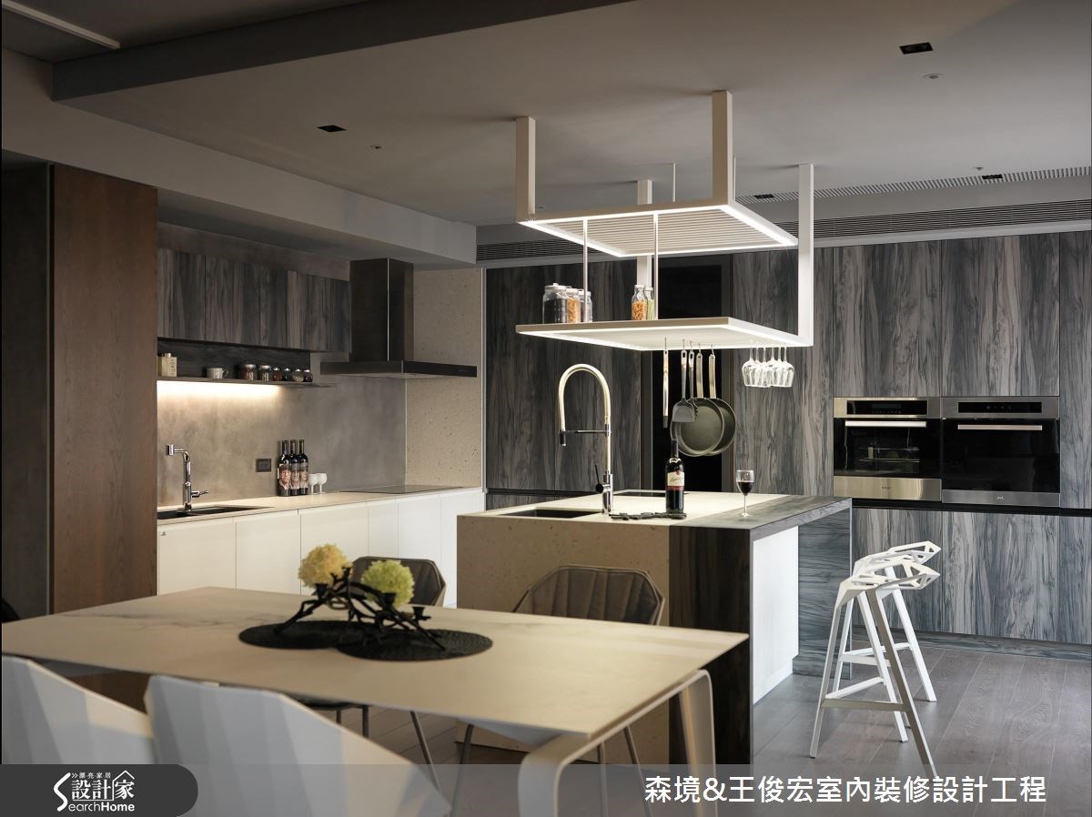 設計師善用居宅先天優勢、化解格局缺陷,在微建築概念的挹注下,結合精心安排的軟裝布置,展現古今融合的獨到品味,快跟著小編一起走進來看看吧! 玄關入門處,利用鐵件、大理石規劃懸吊式隔屏,透過格柵展現俐落視感,同時給予現代感材質運用,達到中西合璧效果,並藉由穿透規劃讓光與風不受阻絕、化解穿堂煞問題;廳區將電視牆結合展示櫃,以鐵件層架做出橫亙連接,有如串聯的橋樑,造就場域之間視線及光線交流;餐廚區則改成開放式設計,不僅促進空間明亮度,更利用若隱若現的霧面玻璃打造展示櫃背景,型構陳列器物的獨特背光畫面;寢臥則在床頭做出塊面線條,呈現多元的色差層次,訴說著優雅休閒的現代語彙,並藉著大面開窗、使室內可近距離飽覽山景,隨時享受大自然洗禮! 小編的最愛 設計師善於在傳統及創新之間取得平衡,將東、西文化完美薈萃,並揉入具有生命力的軟裝佈置,成就簡單雋永、經得起時間考驗的美感風格!