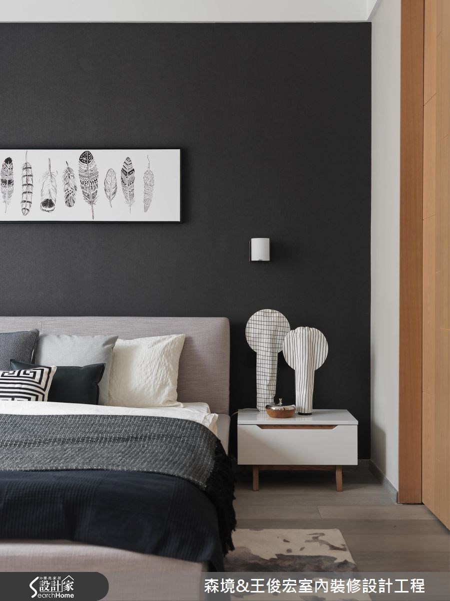 屋主一家人在已經習慣的舊家生活圈內購置了中古屋作為新生活的開展,著請王俊宏設計團隊合作,整頓中古屋缺點後,結合現代藝術家作品串連超溫馨住宅! 由於中古屋有著交錯結構樑柱問題導致壓迫感沉重,若封板恐導致屋高過低,因此設計師保留原始屋高、修飾樑柱;並打破阻絕採光與通風的隔間牆,以全開放設計串連客廳與餐廚空間。整體空間配色以低彩度的黑、白、灰色調為主,為客廳打造沉穩氣息,將亮點保留給牆上黃至正版畫家的《屋頂上的植物學家》作品以及藝術家 Joseph 於黑板牆繪製的家族成員插圖,連同沙發上的系列抱枕,圈起一家人最獨一無二、富有溫度的歡聚時光。開放餐廚身兼多元機能,除了備料烹飪,更能化身孩子們遊戲學習的所在,設計師更利用樑下空間設計大面積櫃體,滿足收納機能。 小編的最愛 主臥以結合書桌與床榻機能的一體成形床組,滿足了屋主對於擴增坪效與多元機能的需求,讓窗邊可隨心放鬆的臥榻空間更顯充裕。