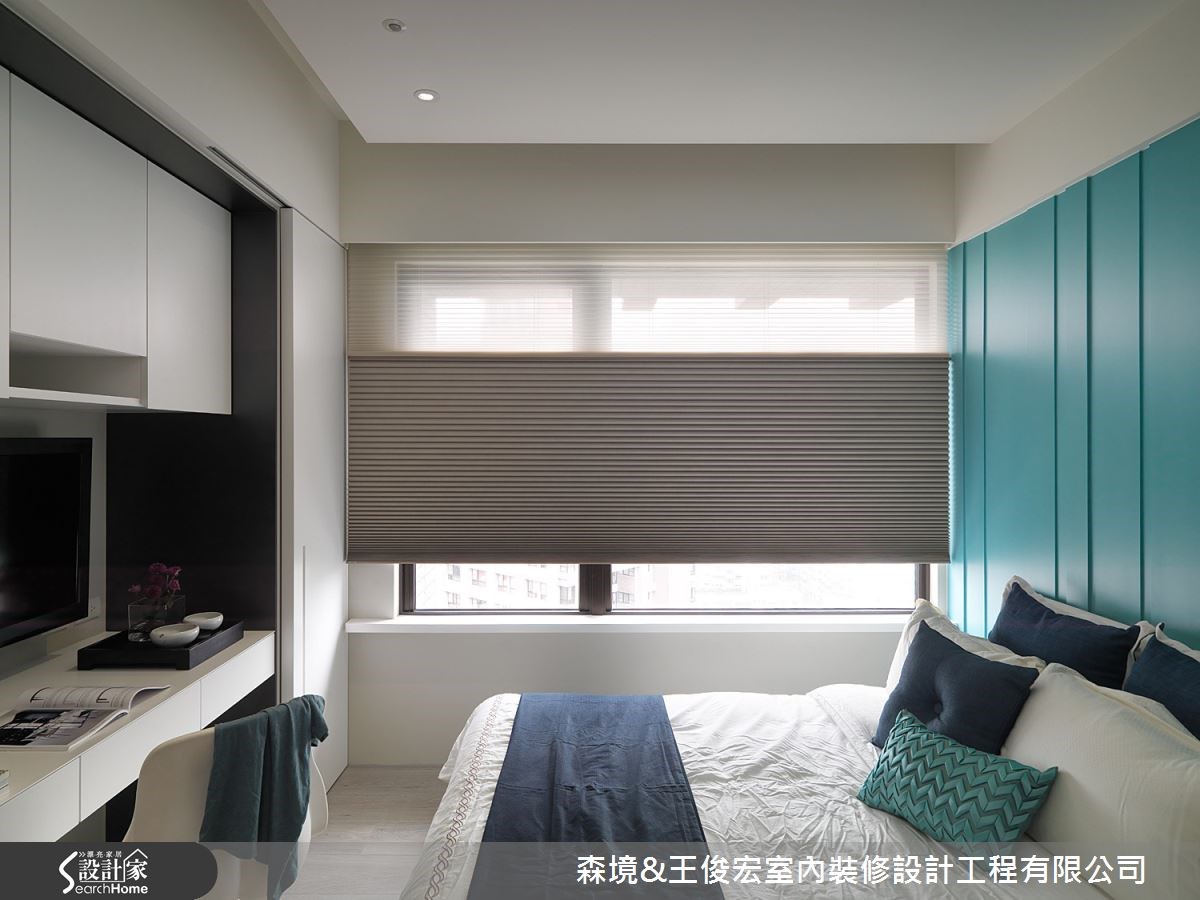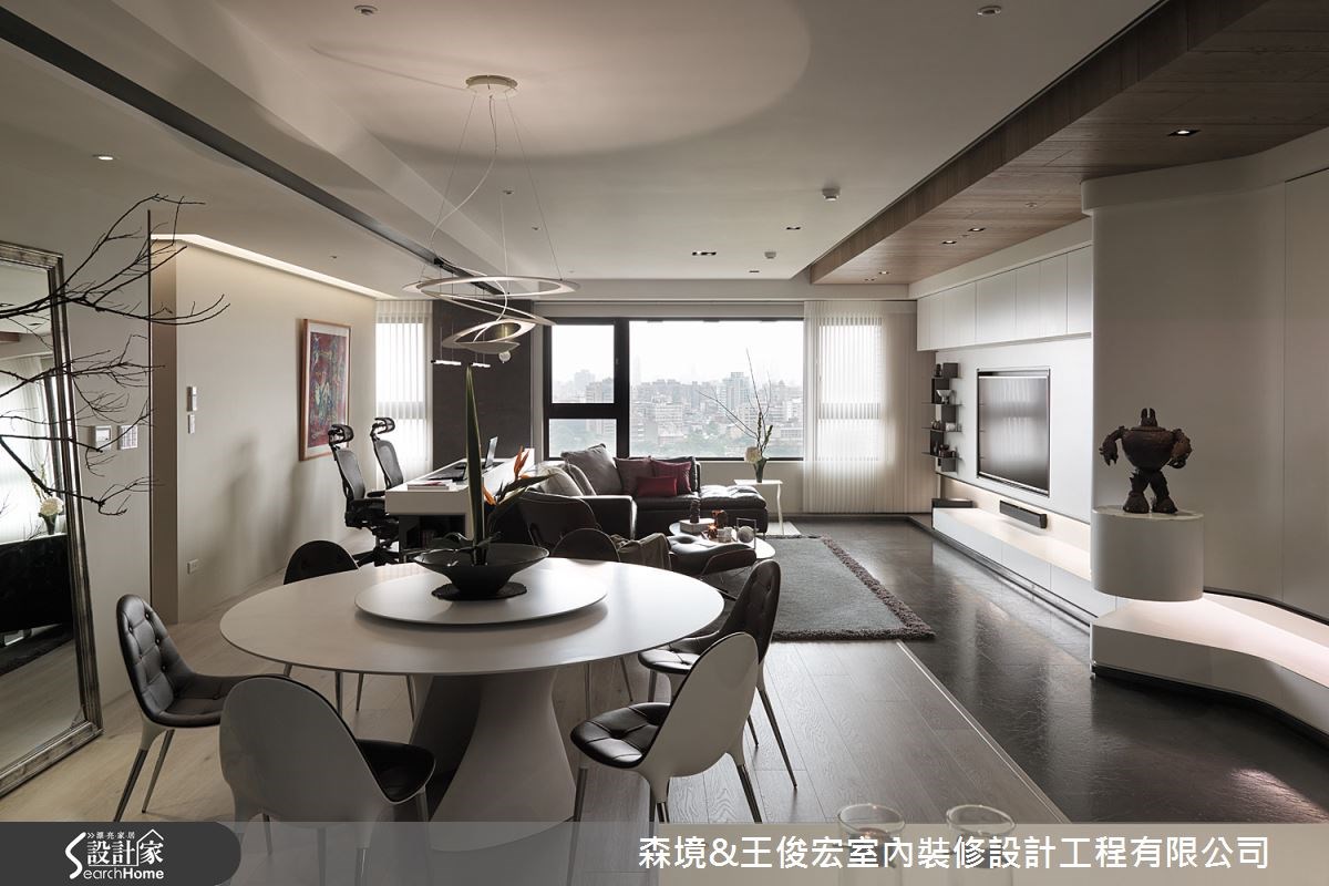 位於台北市的 45 坪居宅,設計師調整空間配置比例,將 4 房改為 3 房,並簡化佈置手法,利用單純清爽的色調鋪陳及隱性的空間界定,為長年住在國外的屋主一家 4 口,營造更加舒適寬敞的居住環境。 將 4 房格局改為 3 房,將臥室放大,主生活空間則採用開放式設計,連結客廳、餐廚及書房等複合生活機能。地板和天花利用不同材質的接合處,劃分領域界線,也在視覺上串連客廳和餐廳的生活動線,獨具一格的圓弧造型設計,作為隱性空間界定,也避免屋主所擔心的風水問題。餐桌採用白色圓桌與上方主燈的造型相互呼應,營造出似乎不斷向外盤旋流動的動態美感。 寬敞的主臥室採光相當良好,配色上則以沉穩的色調為主,並在兼具電視牆功能的牆面上鋪飾木皮,以寬窄錯落的線性切割,隱藏衛浴入口及收納櫃門板,打造美型收納空間。同樣擁有充裕光線的男孩房,融入閱讀和娛樂的機能性,並利用土耳其藍的亮麗色彩帶進活潑個性。 小編的最愛 許多屋主考慮到風水問題,會選擇在進門處設定一道玄關牆,但也容易阻擋光線的行進,讓進門後的空間相當陰暗,設計師突破刻板框架,以弧狀的流線造型設計達成採光、風水,以及設計美感的多重功能性。