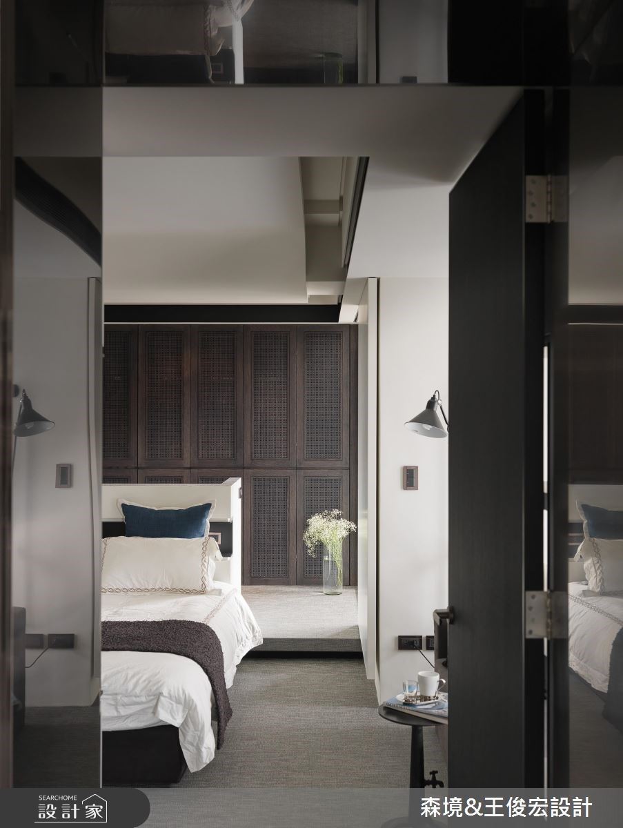 一般人對於 10 坪以下小坪數空間設計的既定印象,多半是零碎而層次繁複的設計,藉由層層疊疊的空間規劃,把所有坪數的空間效益發揮到最大。而對於愛好簡約感的居住者而言,能發揮空間效益固然很重要,但難道無法兼顧簡潔俐落的視覺感嗎?答案當然是可以的!今天就讓我們來看看王俊宏設計師是如何扭轉傳統的小坪數思維,以 8 坪的空間打造出媲美 80 坪大宅的時尚風華。 推開大門,簡單而精緻的玄關端景吸引了目光,讓在外奔忙紛擾的心緒沉澱下來,是動線也是情緒的緩衝轉折,並且為整體空間設計的主旋律拉開序曲。靜靜等候在玄關側邊的,是容量充足的櫃體與造型簡約的桌椅,設計師並不以傳統定義侷限它們的用途,它可以是用餐吧檯也可以是書桌,最重要的是能讓疲憊的主人放下行囊,什麼也不想地坐下來發個呆──回家,就是回到自由的狀態。 而在 8 坪居所裡扮演著核心靈魂的,是以鋼刷木質感及深黑鐵件元素打造而成的電視牆面。設計師以化零為整的概念,讓瑣碎的收納機能與電器管線隱身於鋼刷木質所帶來的穩重美感之中,並結合木質紋理的方向與櫃體線條的寬窄拿捏,讓空間在一致性之中富有低調而豐富的變化感,也使視覺延續著牆面而連接虛實有致的天花板設計,為 8 坪的居家空間注入精緻大宅的設計意念。 小編的最愛 看似牆面的木質感拉門後方,隱藏著五星質感的飯店級衛浴!拉門設計為可雙邊開啟的形式,在使用上更加便利。而設計師更巧妙地讓衛浴內的洗手檯面延伸連結至外部區域,讓空間更具整體感,同時也創造出方便實用的化妝桌檯。居家設計的品味與質感,往往就藏在如此細膩的創意裡,你說對嗎?
