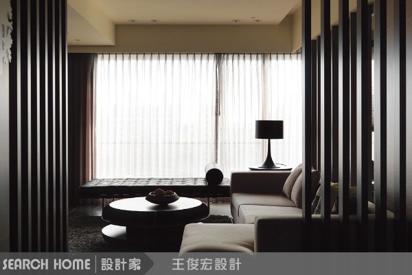 在閱讀高達美(Gadamer)詮釋學的「視域融合」(fusion of horizons)的理論後,王俊宏從高達美對視界的哲學觀得到了靈感,並將它活用在設計之中,希望讓屋主的居住行為拉高到另外一個境界。 從玄關往內看,只感受到空間的器宇非凡