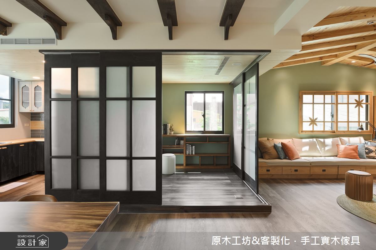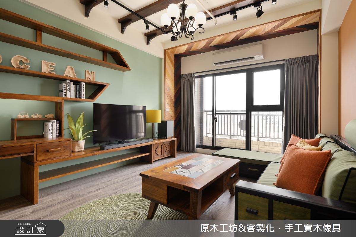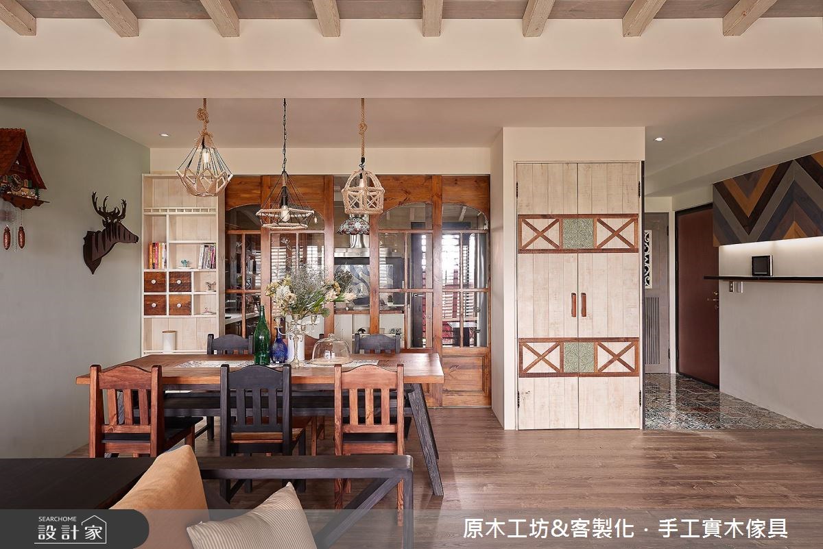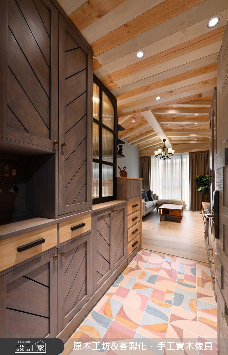 原木工坊&客製木傢具以實木、磁磚、窗花、石材的搭配應用,呈現混搭風居家氛圍,將此間30坪、三房、單層、新成屋(5年以下)打造成舒適愜意的家庭空間,完成2位大人全家人的夢想之居。
