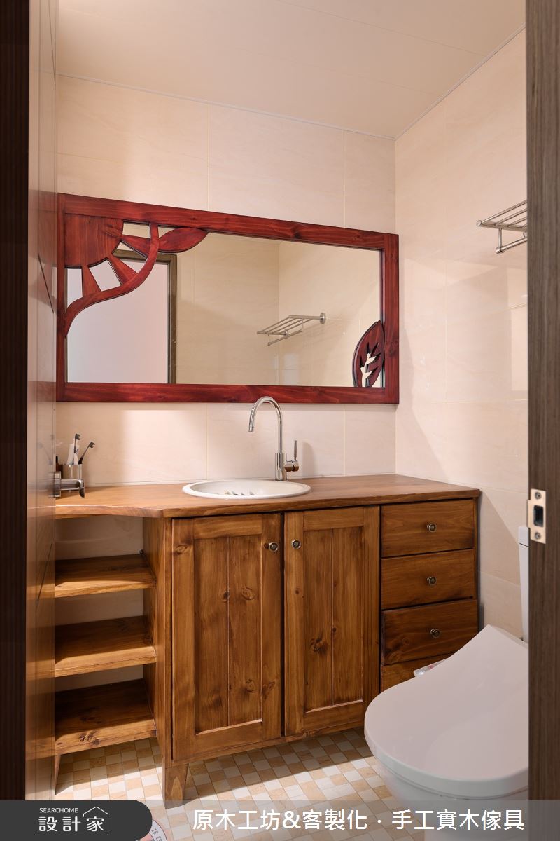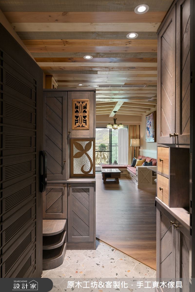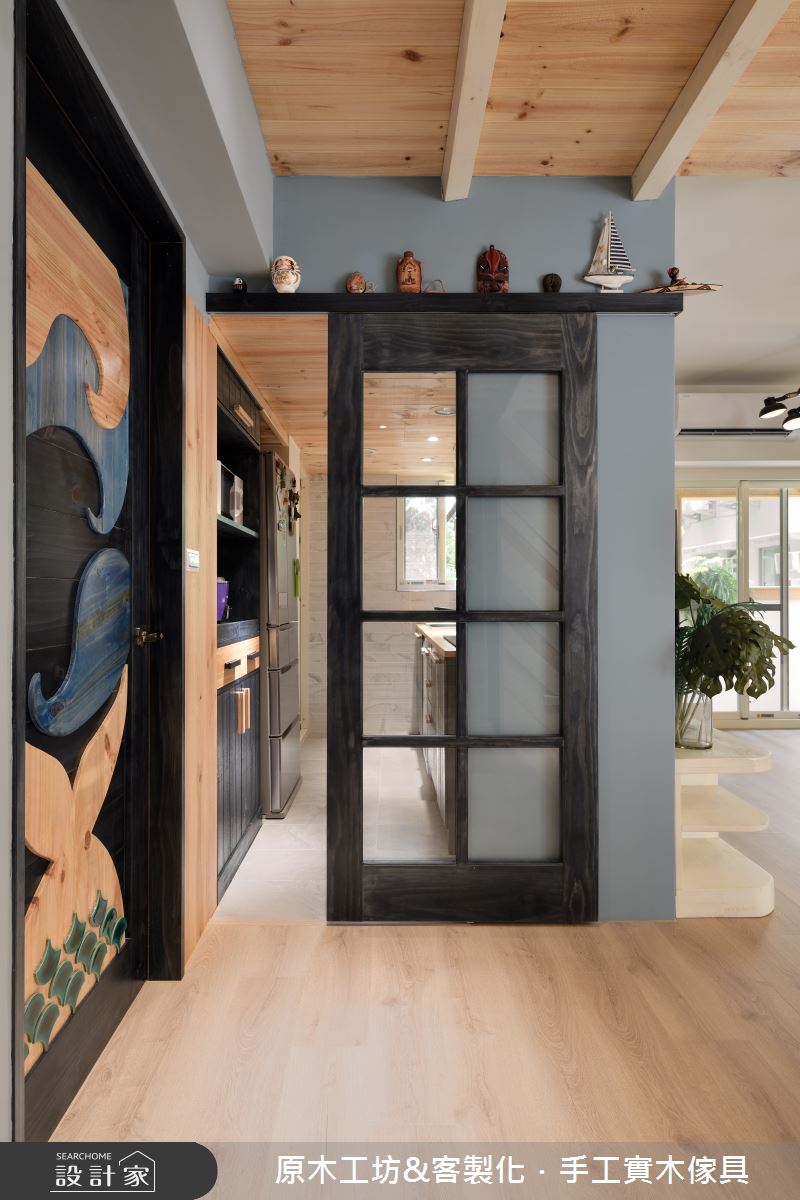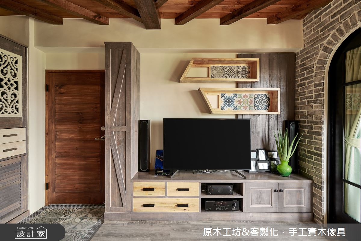 原木工坊&客製木傢具以實木、磁磚、窗花、石材的搭配應用,呈現混搭風居家氛圍,將此間30坪、三房、單層、新成屋(5年以下)打造成舒適愜意的家庭空間,完成2位大人全家人的夢想之居。