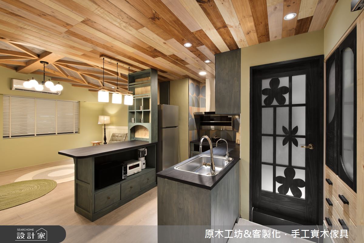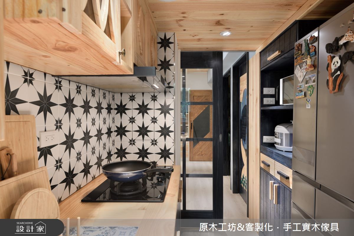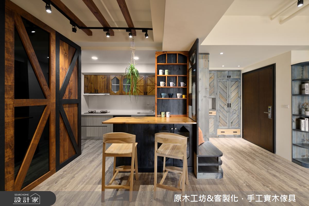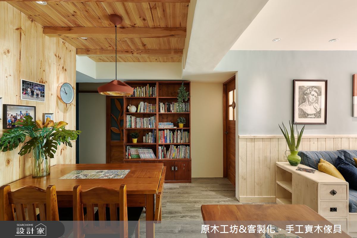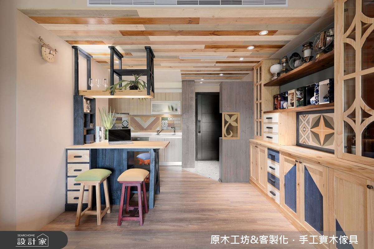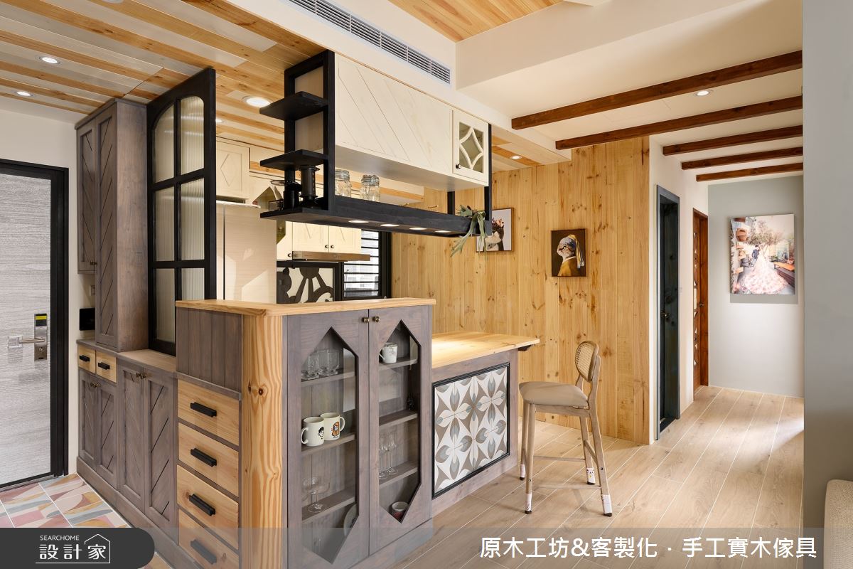 來自原木工坊&客製木傢具的30坪混搭風住宅案,屋主一家人共有2位大人,是一間單層老屋(16~30年)的兩房格局,設計師藉由建材以實木、磁磚、窗花的搭配應用,實現一家人的理想生活。