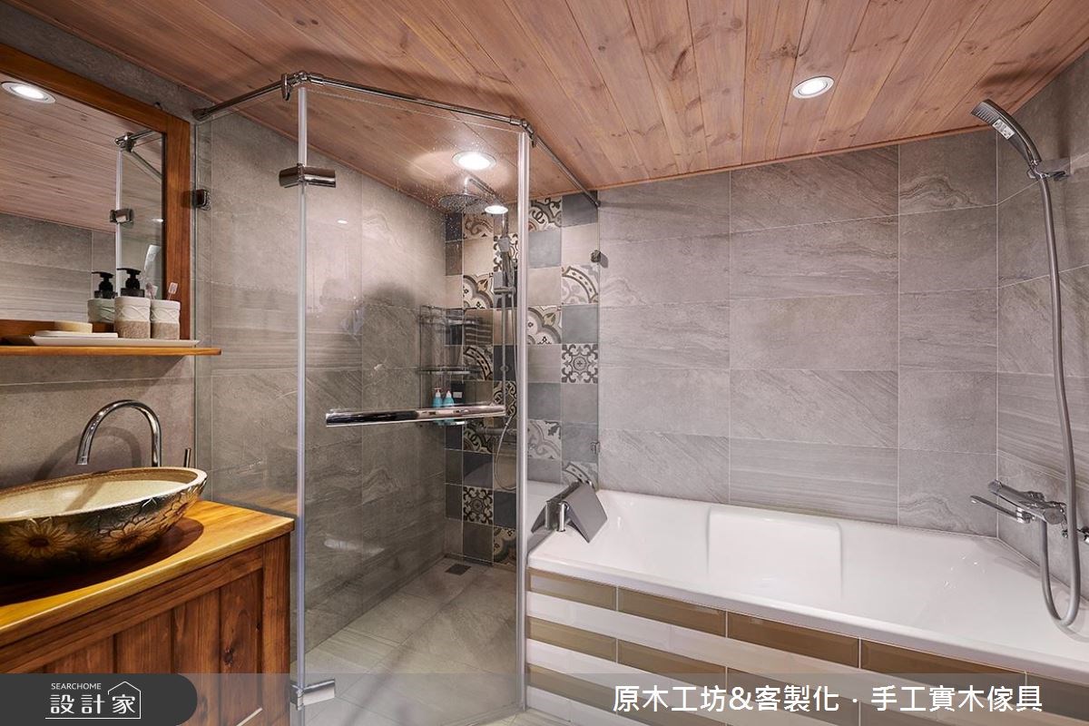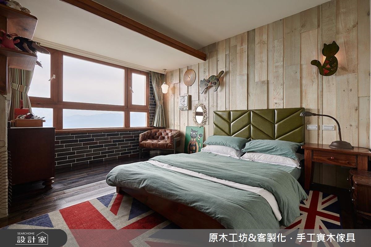 33 坪老屋,有著樓層高的絕佳優勢,於是設計師保有明亮採光與美好風景,並採用實木作為空間主要建材,創造無毒健康的生活環境,並融入個性化設計,型塑獨一無二的鄉村風空間,打造出人與寵物都愛的生活場域,快跟著小編一起走進來看看吧! 走進居家內,玄關鋪設地磚做為銜接內外的緩衝區,與室內木地坪做出界定,空間則採以尖屋頂造型,讓人不自覺將視線帶往天花板,無形中塑造拉抬高度的感受,並採以大量實木醞釀靜謐氛圍,於電視牆做出仿舊手感處理,牆面則施以文化石磚、復古花磚,或透過水泥粉光結合木作創造令人驚豔的花卉圖騰,搭配家具軟件、飾品的合宜妝點,使每一角落都散發出獨到的生活品味;而餐廚則因應經常開伙的習慣,做為日常中的重要區塊,採以開放式格局增進情感互動,並面窗引進美好山景,使一家人可坐擁明亮舒適的聚餐環境;寢臥則在床頭延續有如客廳電視牆的木紋質感,並結合展示架、床頭燈規劃,豐富機能與視覺美感,且於窗畔設置臥榻區,攬進明亮自然光,開啟閒適的休憩閱讀時刻! 小編的最愛 衛浴空間內,簡化了機能設備的存在感,把家飾、畫作、植栽等做為醒目的展示主角,讓人走進其中即耳目一新,感受到有如藝術館般的人文溫度!