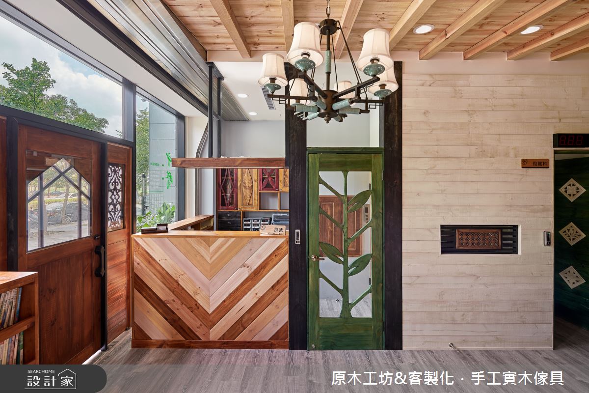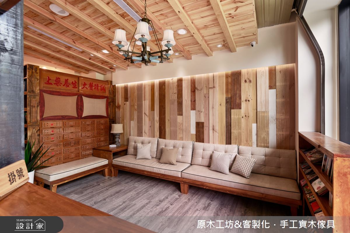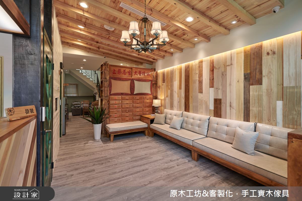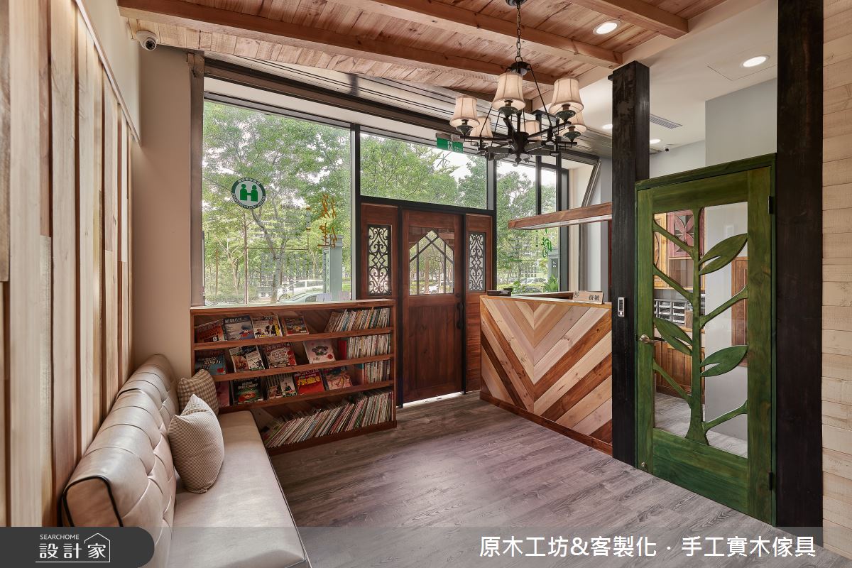 此案為復健結合中醫診所,屋主醫生希望踏進空間裡的病患都能卸下煩惱,在感受到舒適的環境裡能盡情放鬆,等候看診。因此,透過自然的原木質感打造整體空間,揉合鄉村與東方的設計風尚,同時需兼具醫療環境的規格與細節,創造出愜意、溫馨的看診環境。 建築體的外觀以玻璃與原木材質為基底,大門以原木打造,輔以兩側斜背板的櫥窗造型,背板對應到室內則為書櫃設計,滿足一體兩面的實用設計。一樓入口等候區,以漸層的木紋堆疊出背牆,形塑活潑感的立面,隨著牆壁擺設L型沙發,另一側陳列舊式藥櫃,不僅讓出寬敞的進出動線,更營造出東方中醫之美;掛號區的一旁為復健看診間,壁面透過深咖啡色的窗花造型,讓醫生可隨時留意病患等後的情況。二樓的看診空間,則陳列出商品與書籍,讓等候的病人可以閱讀或添購所需商品;且以原木設計的矮櫃、黑色門扇界定出製藥區,視覺上可達到穿透,又能劃分領域。醫生休息室裡,則透過淺色木紋與綠色調,交織出清爽、舒服的空間氣息。 小編的最愛 三樓為足部治療區,梯間牆面利用屋主收藏的窗花予以妝點,增添優雅與復古風情,與原木質感的空間相融,毫無違和感。