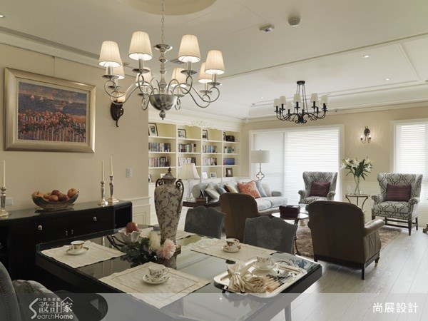 本案屋主對居家設計、佈置的想法是,低調、低調、再低調。屋主有許多質感很棒的家具,可惜舊家的空間有些侷促、採光也不太好,這些質感超卓的家具光芒多少有些被掩蓋,因此設計師空間規劃的第一要務就是營造明亮的通透感,把最主要的客廳與餐廳的空間打開,連結在一起,讓空間開闊。一般美式設計,總是會把壁爐跟電視牆結合,並且擺在客廳的正中位置,而這次尚展設計順應這房子原有的斜角格局做特別的安排,把壁爐移到靠牆靠窗的位置,搭配原來屋子長形挑高的大窗,非常的好看。此外,並重整了建商原本提供的空間配置,把陽光引進來,把空氣帶進來,讓屋主心愛的家具有了全新且可以完全展現優美身段的舞台。主要建材:進口超耐磨木地板、文化石。裝修費用:200~299萬。