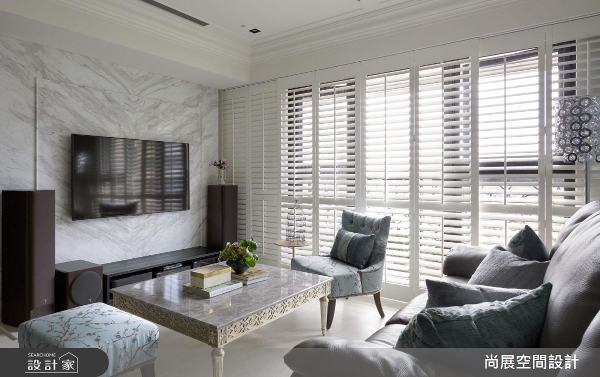 40 坪的美式風居家,設計師深入瞭解屋主的生活習慣,將其收藏的杯壺用具、畫作古玩融入設計之中,讓美式現代元素結合東方意蘊,展現清新的居家視野,同時考量到生活需求,減少廚房使用面積,並放大餐桌茶飲區,讓家充分詮釋出居者的經典品味,快跟著小編一起來看看吧! 公領域,選用淺灰、藍色、湖水綠等色彩,揉合成輕盈的視覺主調,並以天然大理石疊砌客廳電視牆,搭佐整排百葉窗,以及簡化的線板修飾,凝聚安定和諧的空間基底;餐廳領域,則集結收納、展示等複合式主題,將屋主蒐藏的大量杯壺用具妥善置於抽屜格子內,在東方質感的藝品妝點下,帶出美式風的新穎層次;同時考量到屋主在主臥的時間較多,將格局重新分配,把貫穿空間、長達九米的長廊截短,多創造一個臥室內的衣帽間,並打造長廊盡頭的儲藏室,滿足屋主的收納需求,並讓臥室兼具休憩,閱讀等主題,串聯從容舒適的使用情境! 小編的最愛 設計師結合收藏展示、硬裝規劃,在有限坪數內兼顧收納與展示,讓收藏藝品可輪替展出,打造已有如私人藝廊的住宅視野!