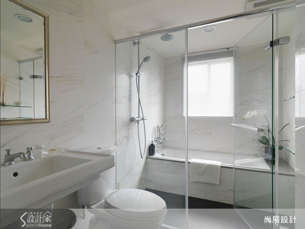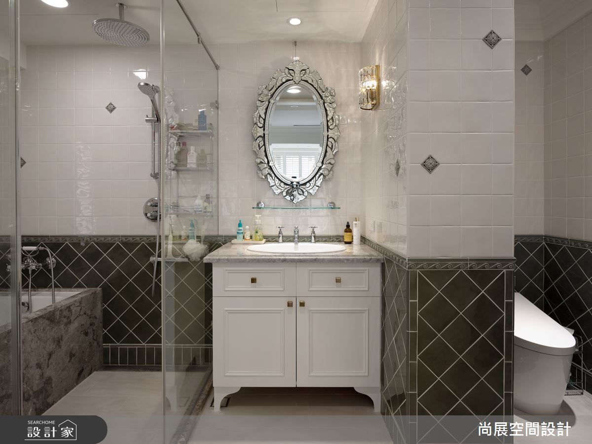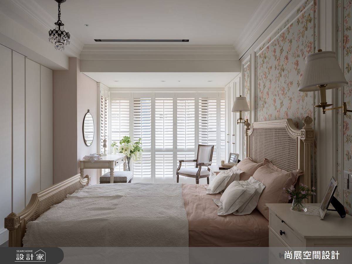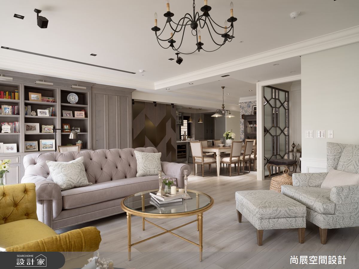 由尚展設計精心規劃的135坪四房住宅空間,家庭成員一共有2位大人、1位小孩。因應屋主需求,設計師運用新古典作為主軸,搭配壁紙、超耐磨木地板、鐵件、磁磚、線板、木作、玻璃,打造全家人的夢想家居。